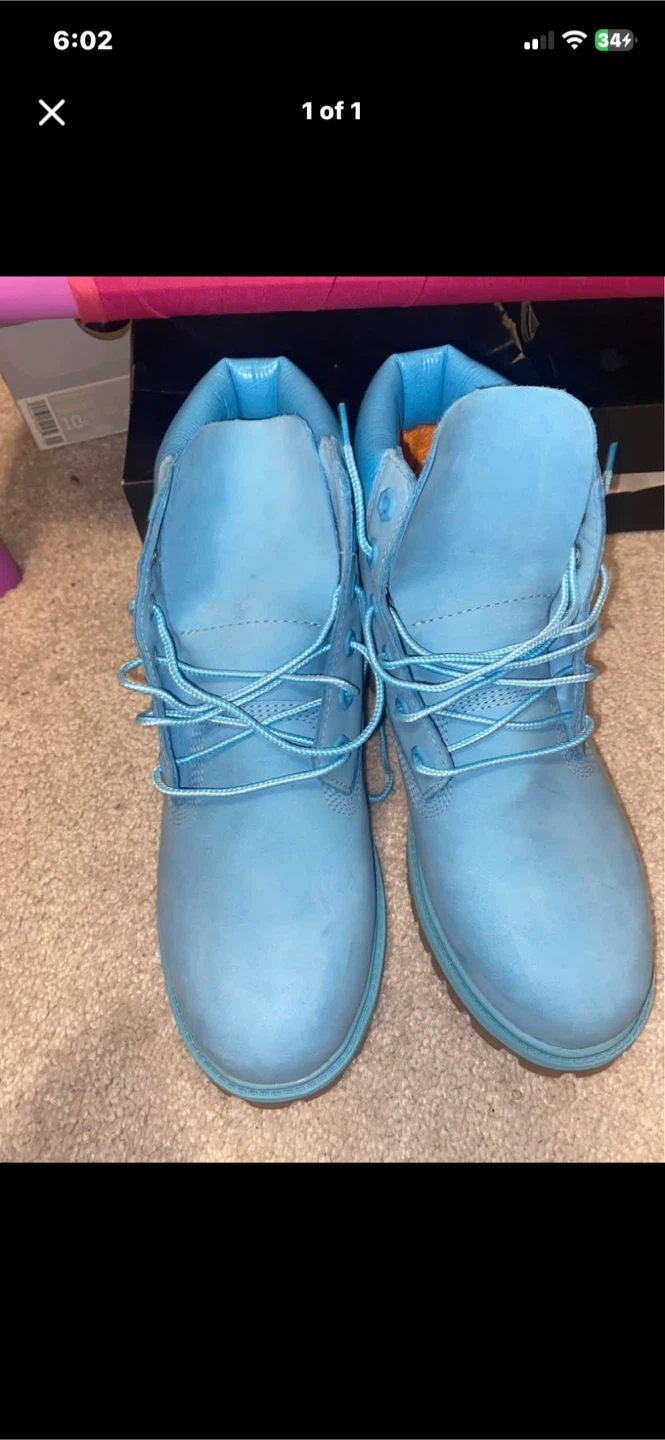 Buy & SellTimberland Boots - Light BlueTimberland Boots - Light Blue$90Light blue Timberland boots. Woman’s size 7 serious buyers , only worn onceConditionLike newSize7BrandTimberlandWHERE TO MEETCheck LocationView MapSELLERShatW Brant100 reviews0 chats·1 favorites·15 views