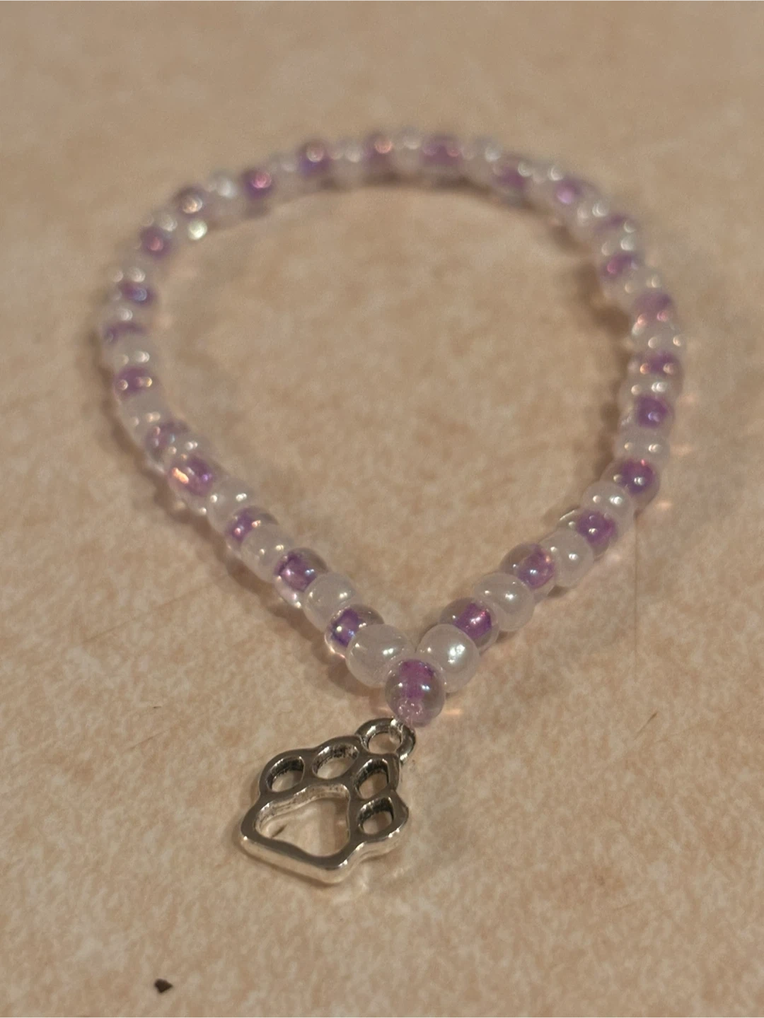 Check out these cute handmade beaded bracelets! They come in a variety of colours and have different charms, and words ,including paw prints, hearts, and 'Faith, love and believe. They're perfect for adding a little something special to your outfit or as a gift for a friend or family