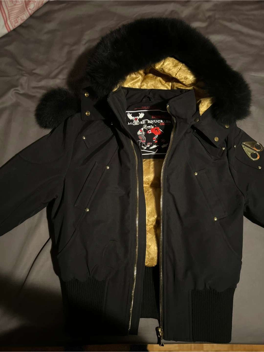 Selling a Moose Knuckles down-filled bomber jacket. It's a stylish and warm jacket, perfect for the Canadian winter!