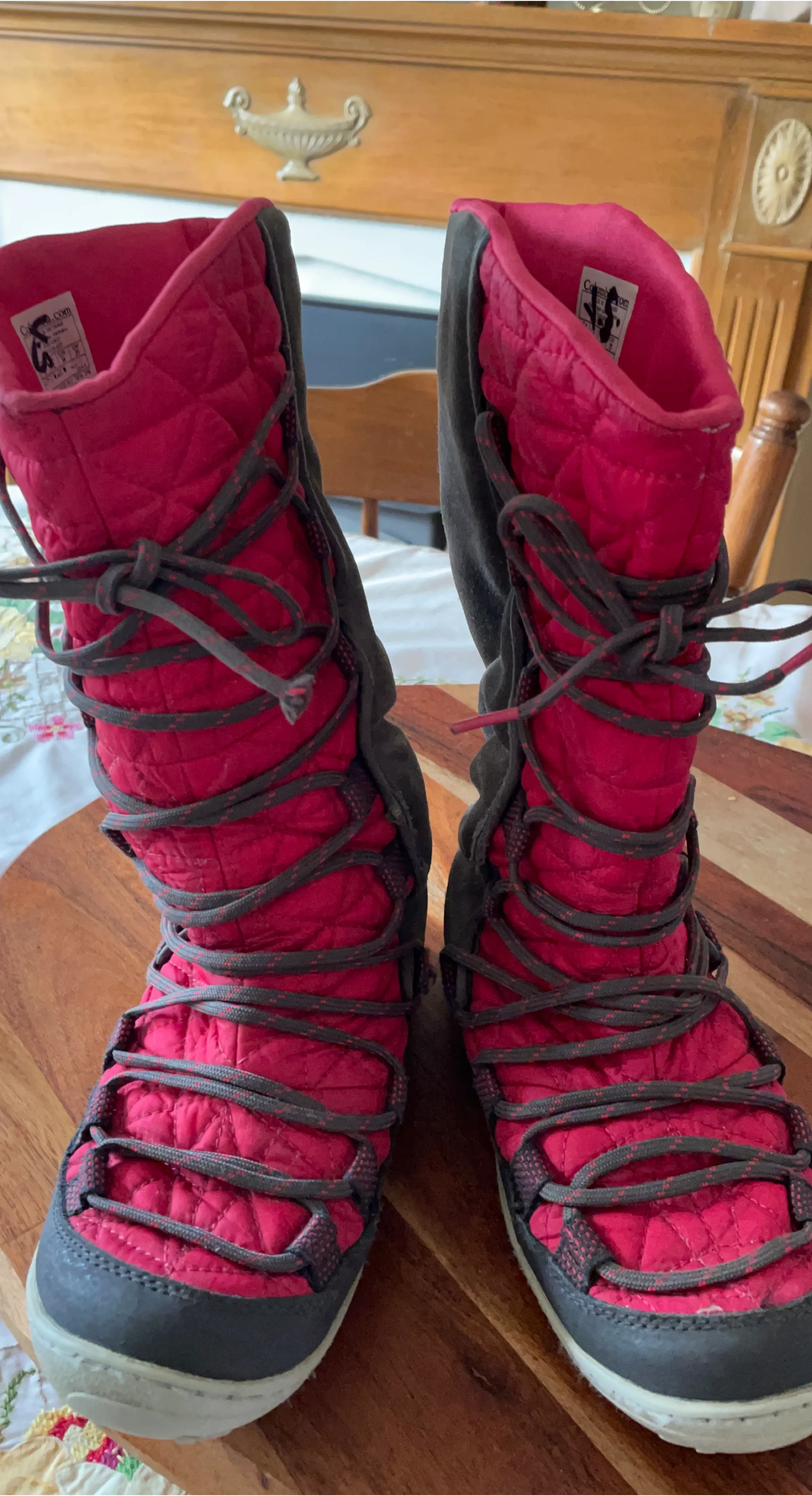 Here are a pair of Columbia women's winter boots .They are a nice shade of red with gray accents. Perfect for keeping your feet warm and dry during the winter months