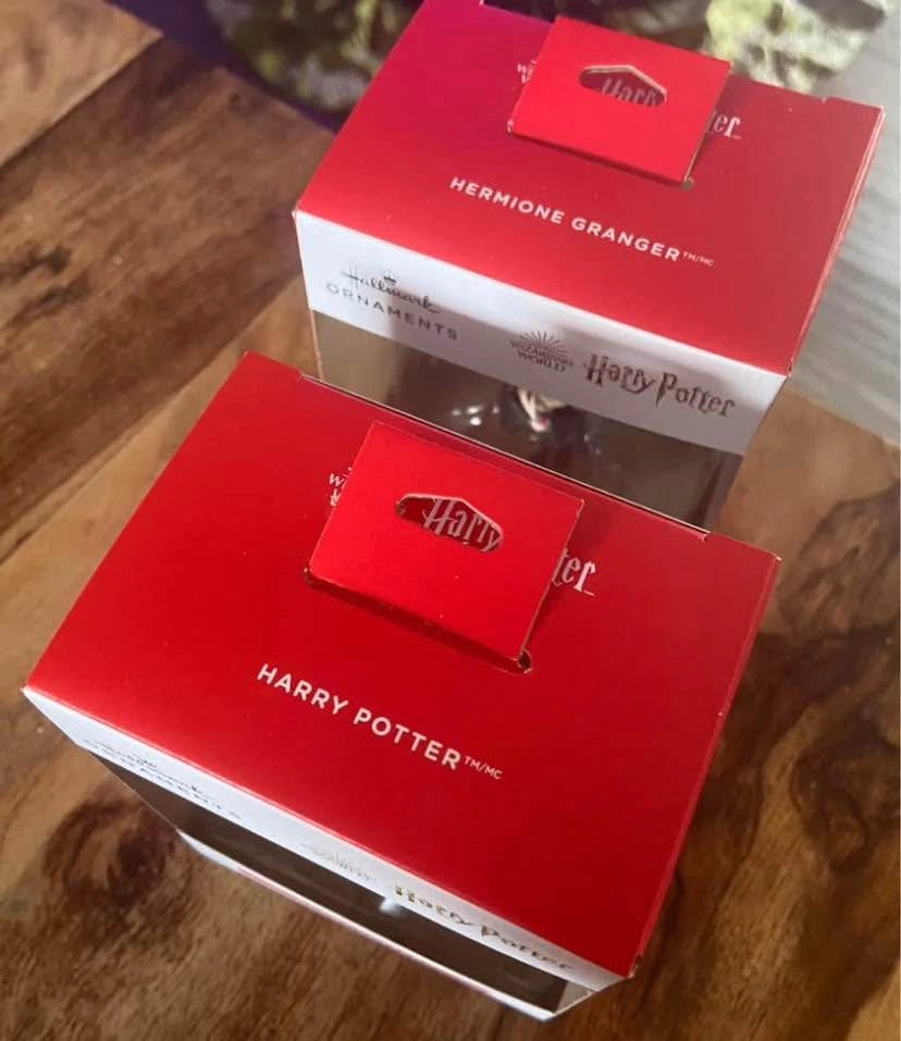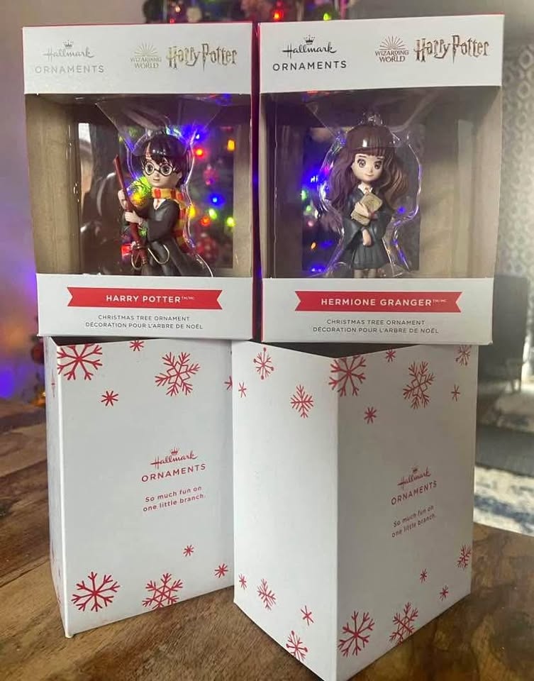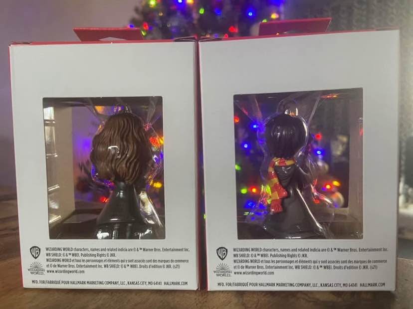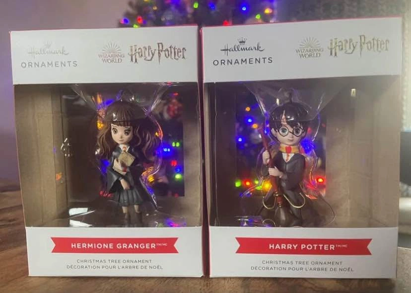 Hallmark Ornaments: Wizarding World of Harry Potter > Harry Potter and Hermione Granger. Both are BRAND NEW in boxes, mint condition with protective cardboard sleeves, & from a smk-free home. Pick-up north-end St Catharines.