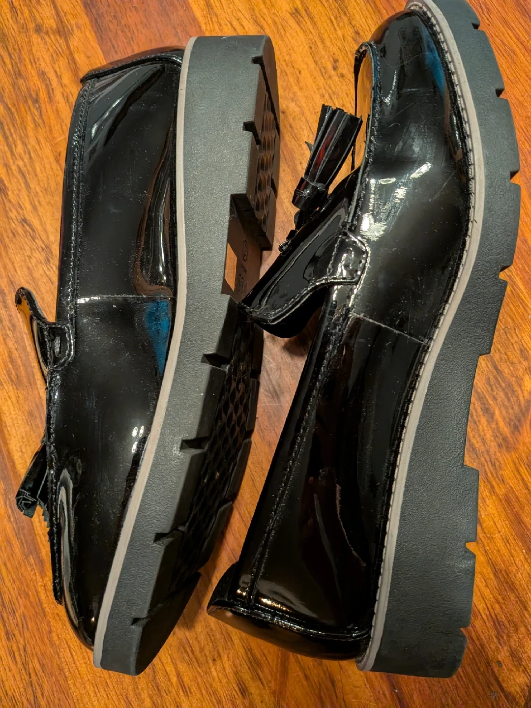 168Selling a pair of women's stylish black patent leather tassel loafers. They're in great condition and would be a fantastic addition to any wardrobe! Size 9, fits more like 8.5 Nice and cushy Very good condition, worn 2x Cash only, no etransfers Location: Etobicoke. Rathburn Rd and Renforth dr. Etobicoke Olympium nearby