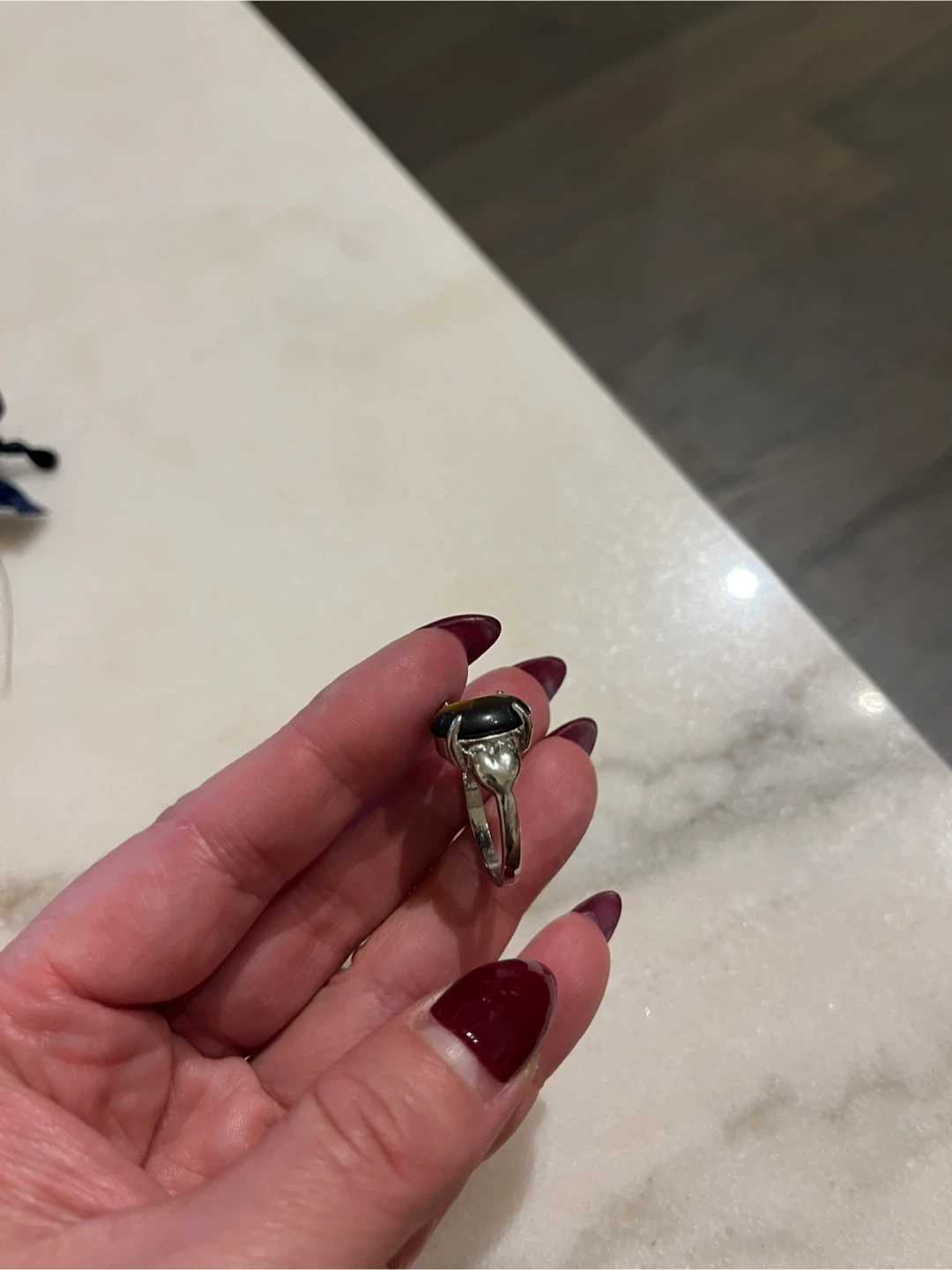 This elegant ring features a striking tiger eye stone set in a sterling silver band. Perfect for adding a touch of sophistication to any outfit. Brand new size 8