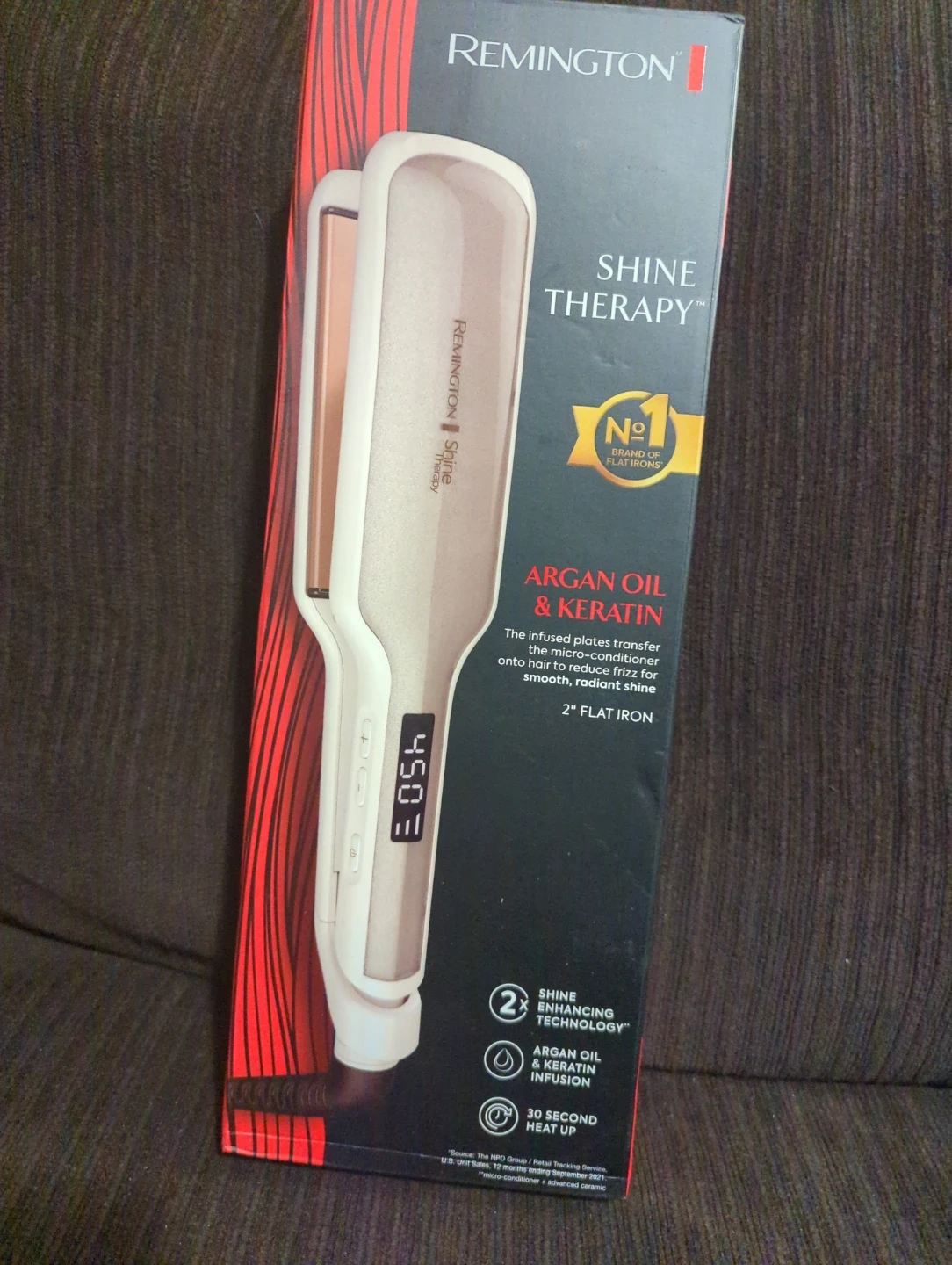 87Selling a brand new Remington Shine Therapy flat iron! It's a 2-inch flat iron with argan oil and keratin infusion for smooth, radiant shine. Heats up in just 30 seconds. Get yours today!