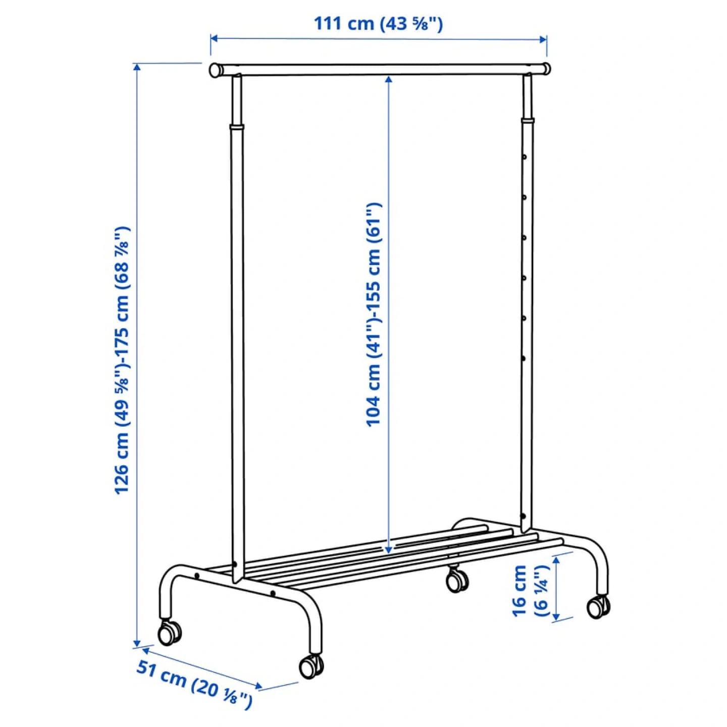 Selling a handy IKEA clothes rack! It's white and comes with wheels, making it easy to move around. Perfect for extra storage or organizing your wardrobe. Dimensions in the pictures!