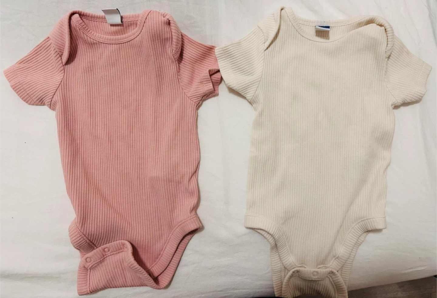 Two cute Old Navy baby bodysuits in size 12-18 months! One is a lovely pink and the other is off-white. They're in great condition and ready for a new little one