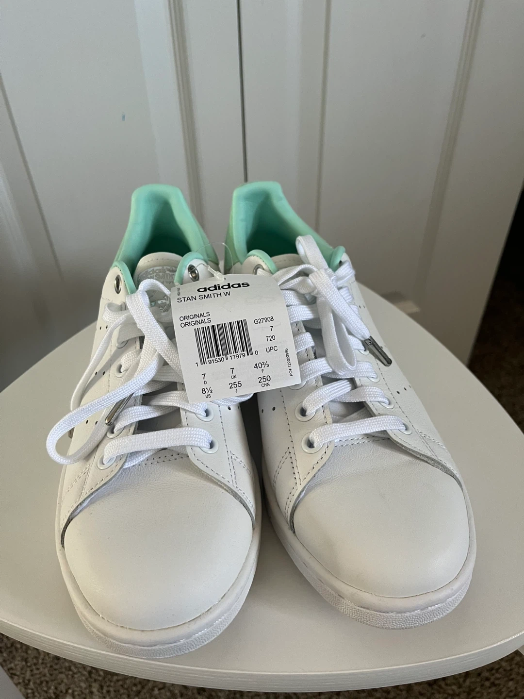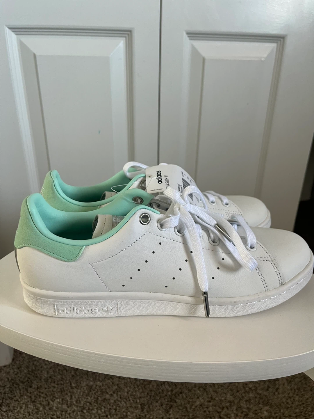 These Adidas Stan Smith W sneakers are brand new and ready for a new home! They're a women's size 8.5. They fit little bit big for me. (I am usually size 8 or 8.5)