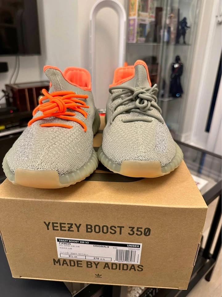 Buy & SellAuthentic Yeezy 350v2 Desert SageAuthentic Yeezy 350v2 Desert Sage$355Brand new in box. Comes with extra laces I bought to match the shoe. Original laces included. Price is firm.WHERE TO MEETCheck LocationView MapSELLERverifiedKevinHenry Farm711 review0 chats·0 favorites·3 views