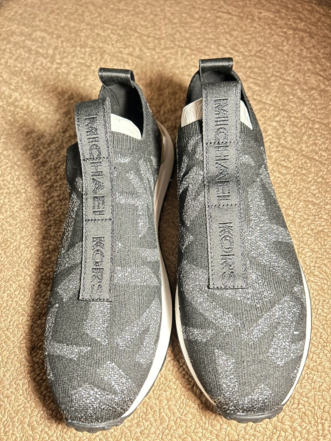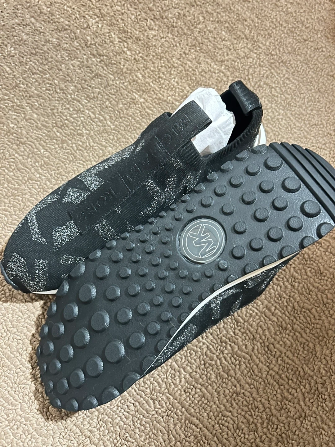Selling a pair of Michael Kors slip-on sneakers in size 9. They're in great condition and super comfy for everyday wear! The design features the MK logo. Perfect for adding a bit of sparkle to your casual outfits! New (never worn).