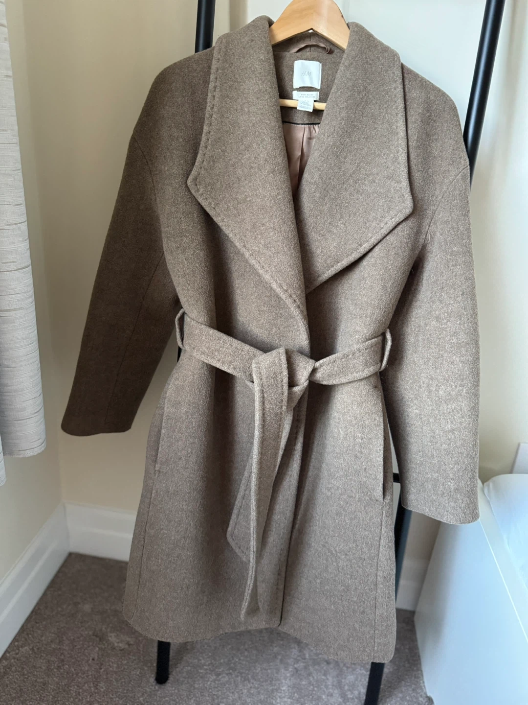Selling a lovely beige belted coat from H&M (premium section) It's a XS size and in great condition. Perfect for layering during the cooler months, and the belt helps cinch the waist for a flattering fit. The neutral colour makes it easy to pair with any outfit