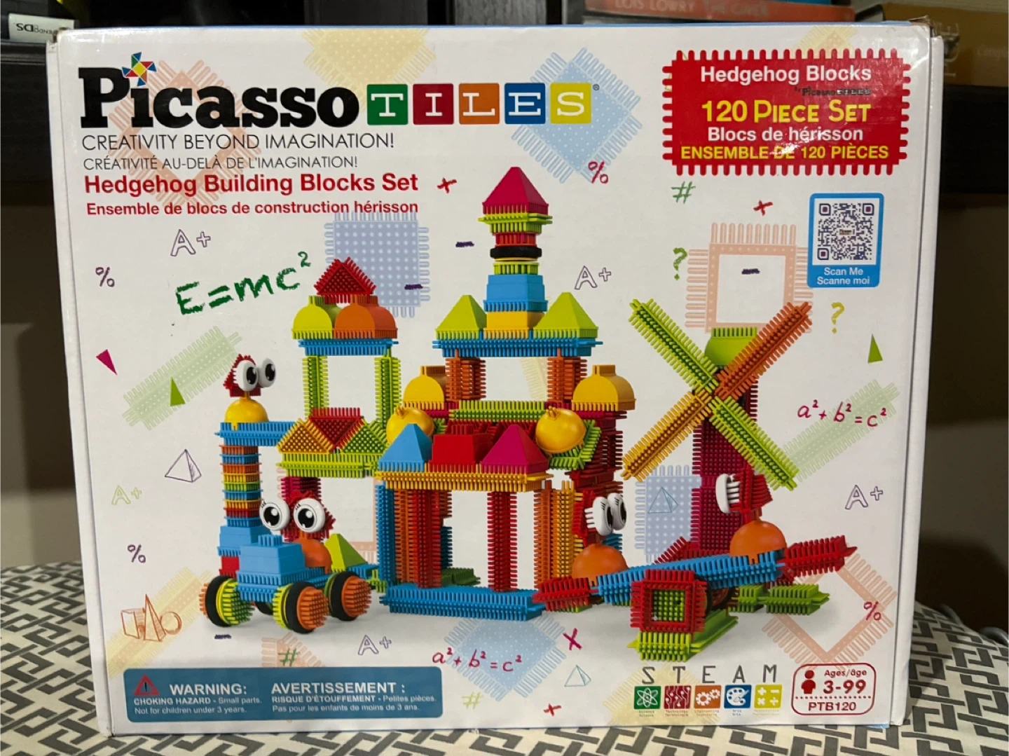 Selling a Picasso Tiles Hedgehog Building Blocks Set! This set comes with 120 pieces, perfect for kids aged 3-99. It's a great way to encourage creativity and imagination with high-quality, durable, and non-toxic materials.