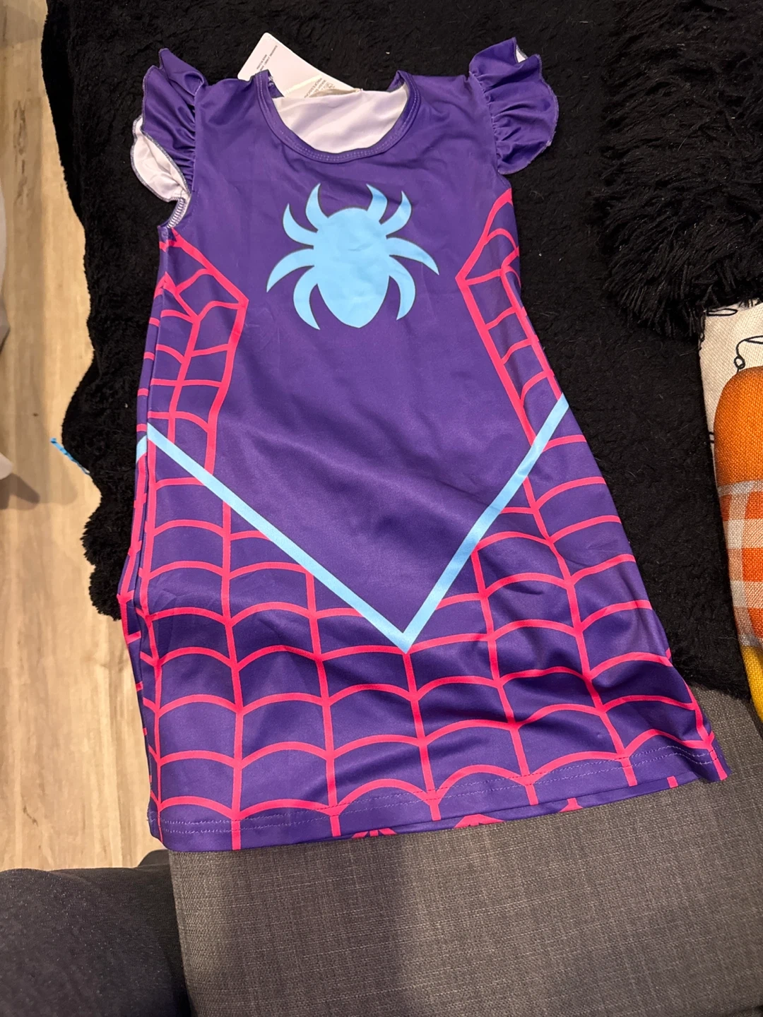 Cute LingQiShiZu dress with a spiderweb design! It's a size 100 and features a fun spider design on the front. Perfect for your little one!