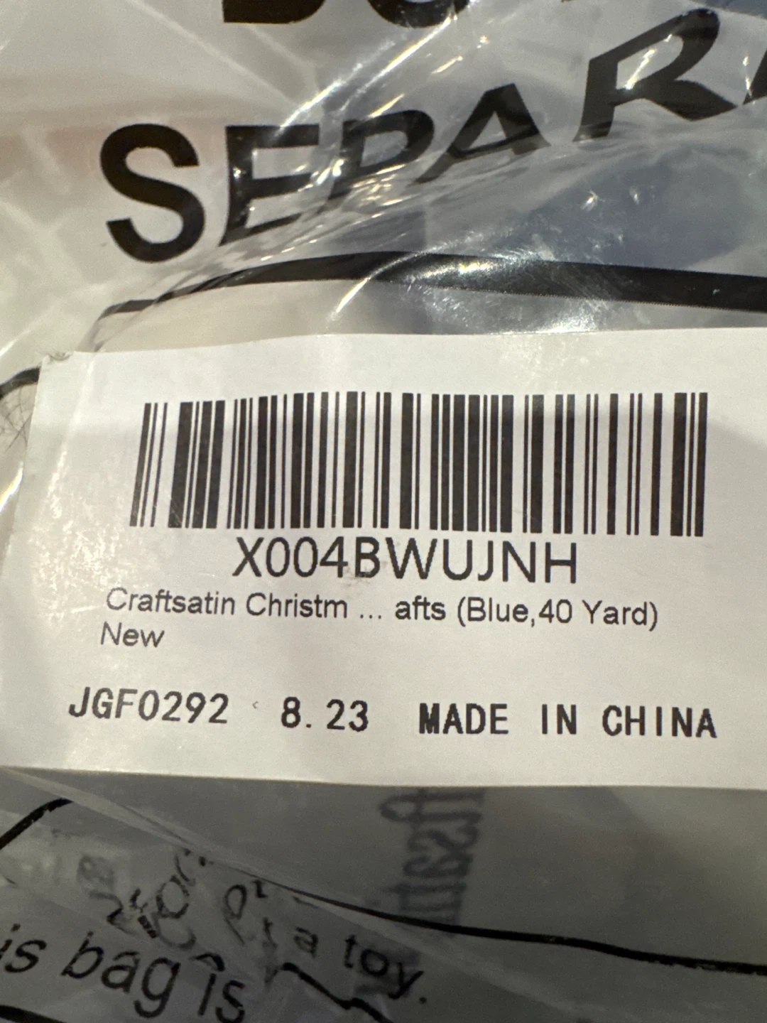 Selling a brand new roll of Craftsatin Christmas Crafts in blue. It's 40 yards long and still in its original packaging!