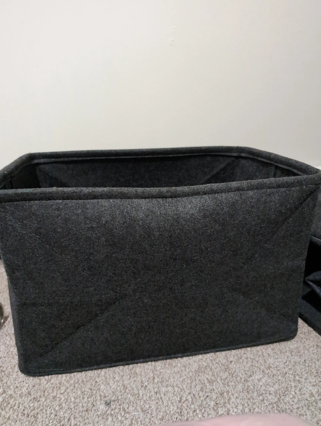 Here's a handy grey felt storage basket! It's in great shape and ready to help you organize your space. Perfect for decluttering any room. 2 baskets for 5$