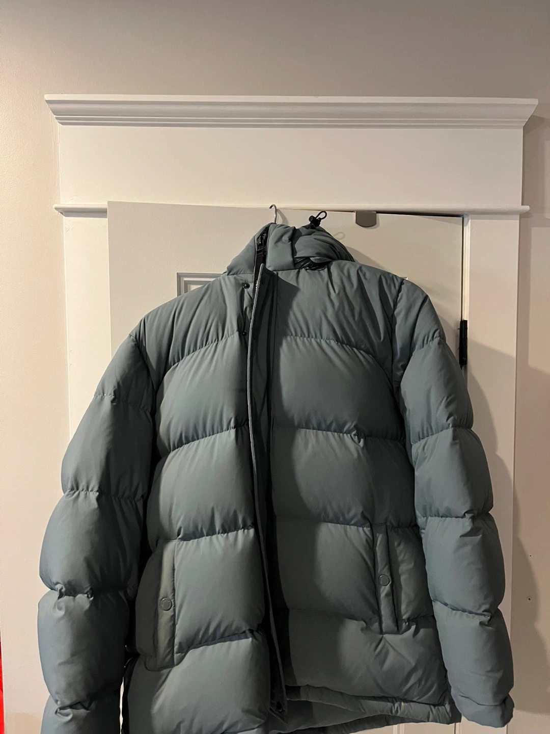 Selling a cozy Aritzia The Super Puff™ jacket in a lovely grey-blue colour! Perfect for staying warm during those chilly Canadian winters. It's in great condition and ready for a new home! It’s gotten a bit too big for me but only a season old. In really good condition.