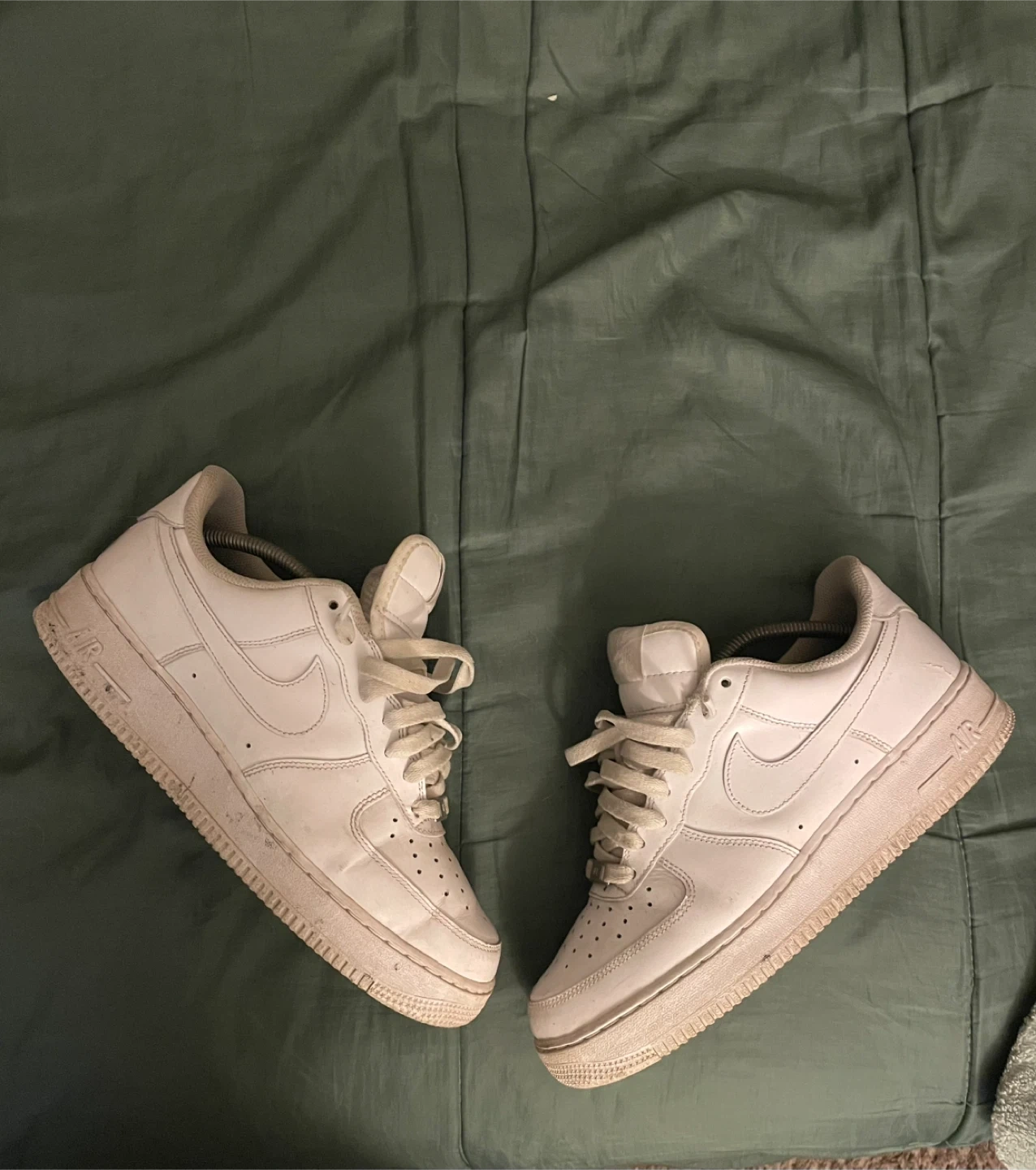Selling a pair of Nike Air Force 1s in size 8.5. They show some signs of wear as you can see in the pictures but still have lots of life left