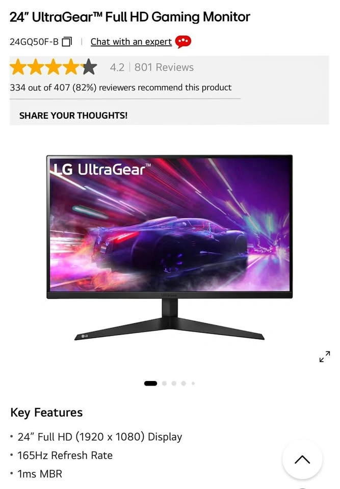 Selling my LG UltraGear 24” Full HD (1920×1080) Gaming Monitor, model 24GQ50F-B. I always used a monitor arm, so the stand barely saw use and the monitor has been extremely well cared for.