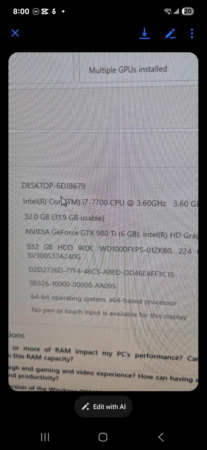- Intel(R) Core(TM) i7-7700 CPU @ 3.60GHz