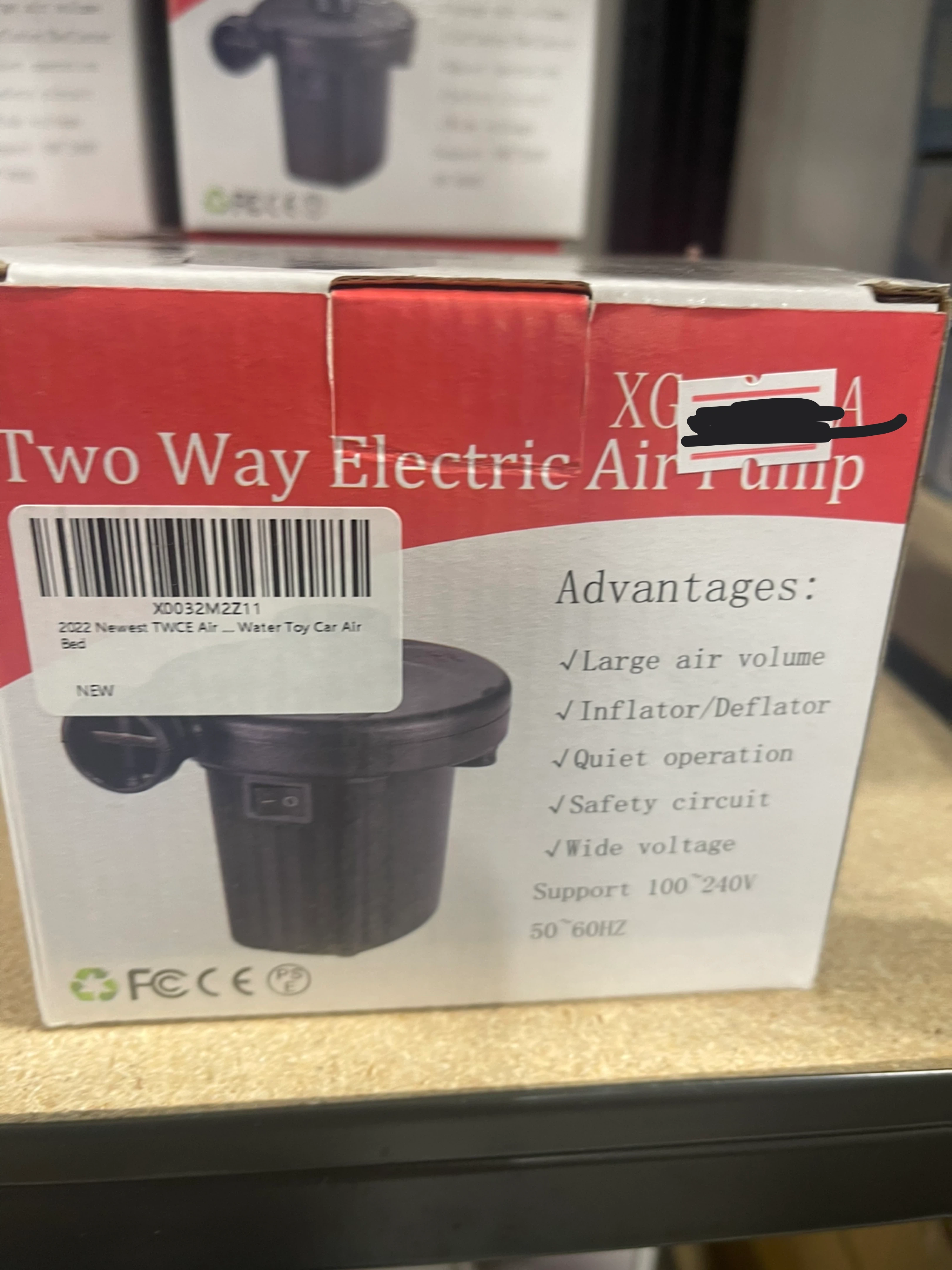 Selling a brand new Two Way Electric Air Pump! It comes in its original box and is perfect for inflating air mattresses, water toys, and car beds.