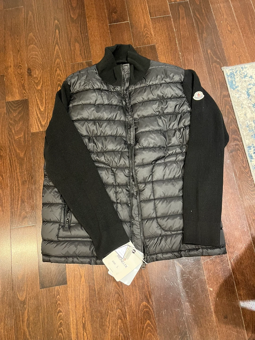 Selling a Moncler black padded jacket in size L. It's in great condition and ready for a new home!