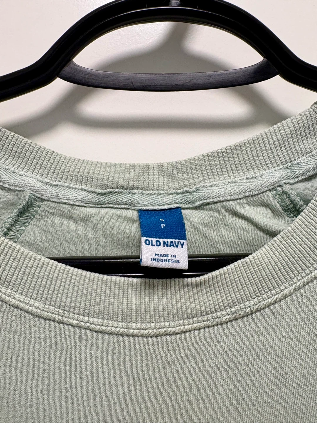 A comfy Old Navy crewneck sweatshirt in a teal colour! It's a size small and would be a great addition to your wardrobe for those cozy days.