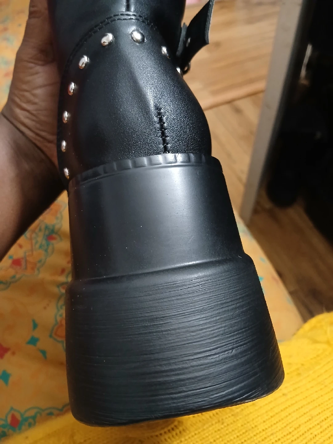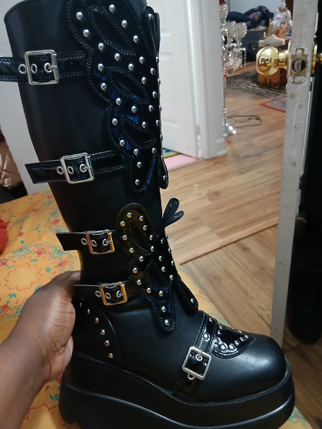 25Selling a pair of Demonia black platform boots. They feature a cool, edgy design with studs and buckles. Perfect for adding some unique style to your wardrobe! super light weight.
