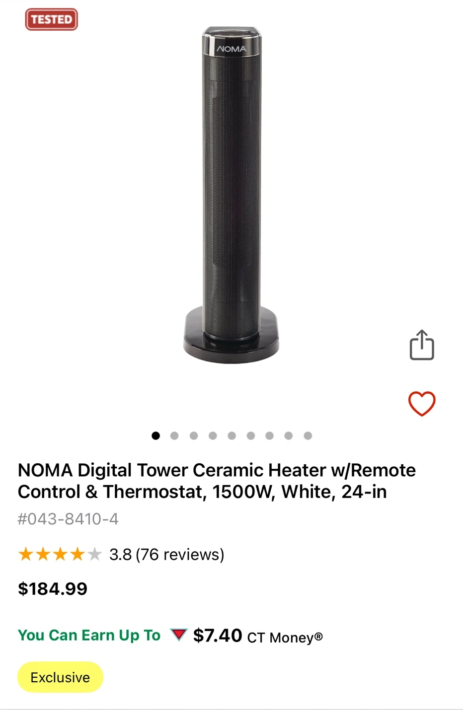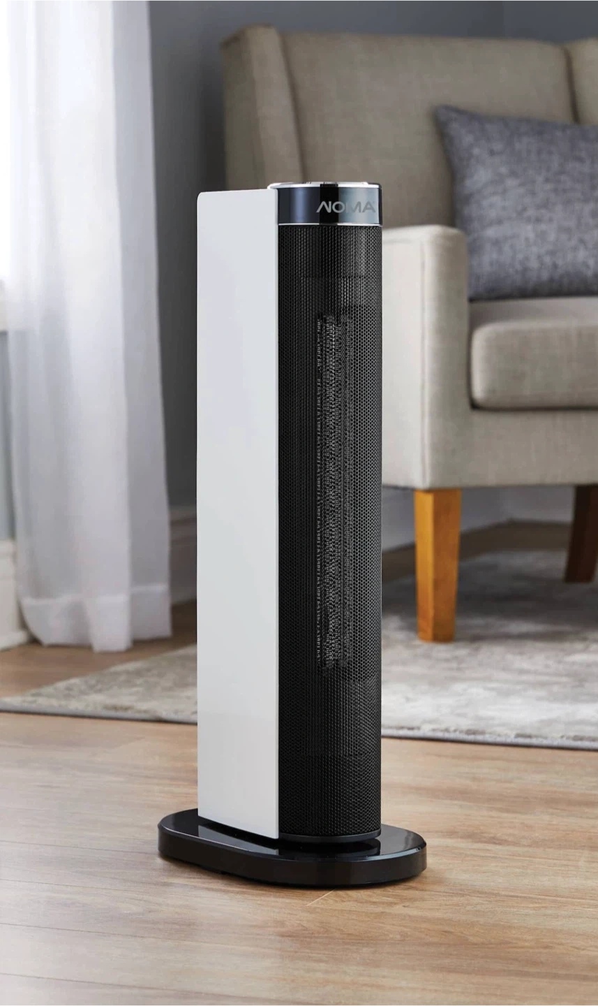 Selling a NOMA ceramic fan forced heater, perfect for medium-sized spaces! It's in great condition and ready to keep you cozy. The heater stands 24 inches tall and has a base of 11 x 7.06 inches.