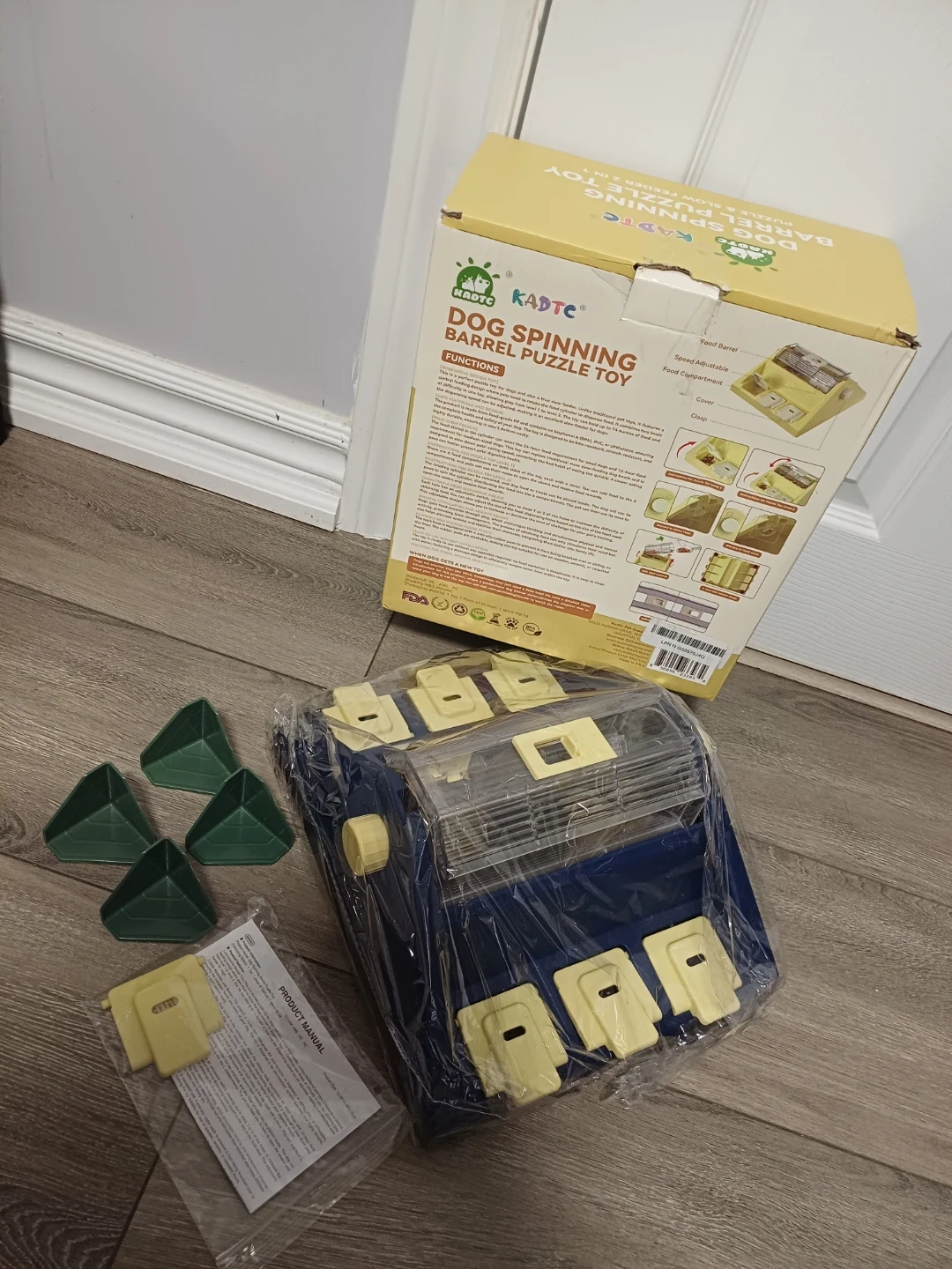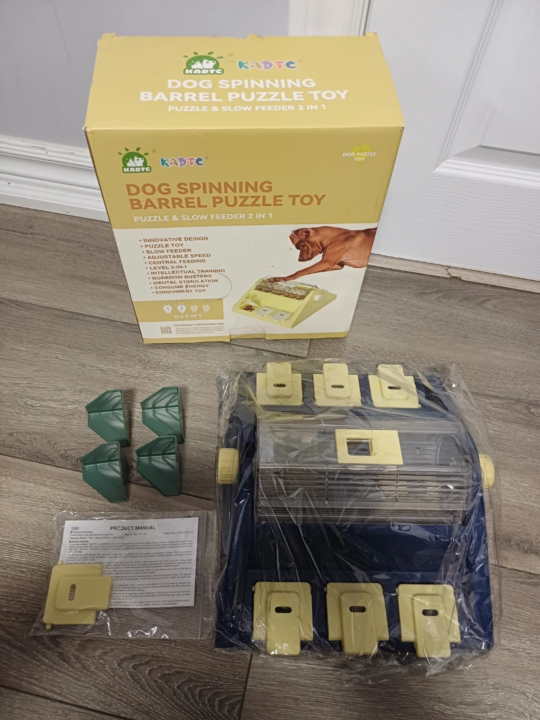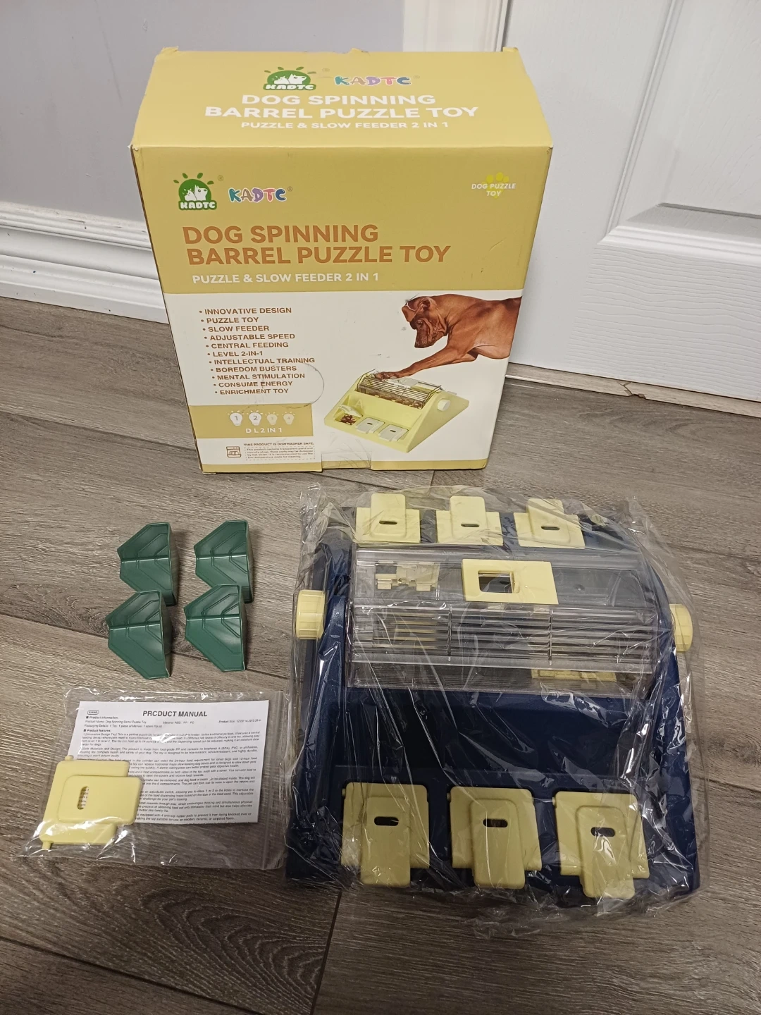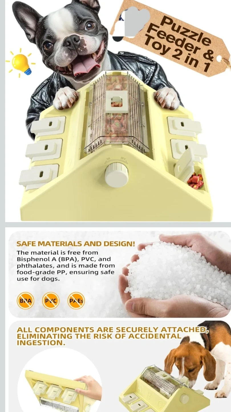 112I'm selling a brand new KADTC Dog Spinning Barrel Puzzle Toy! It's a puzzle and slow feeder 2 in 1. - Innovative design - Adjustable speed - Central feeding - Boredom busters - Enrichment toy It enhances the interaction between your dog and the toy and encourages mental stimulation and relieves anxiety! It also promotes cognitive development, helping improve your dog's intelligence levels through engaging play. The material is free from Bisphenol A (BPA), PVC and phthalates, and is made from food-grade PP, ensuring safe use for dogs. All components are securely attached, eliminating the risk of accidental ingestion. The box is included! Try itππ