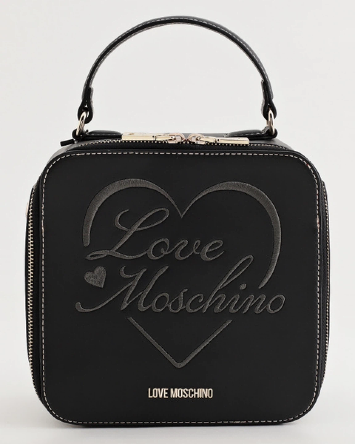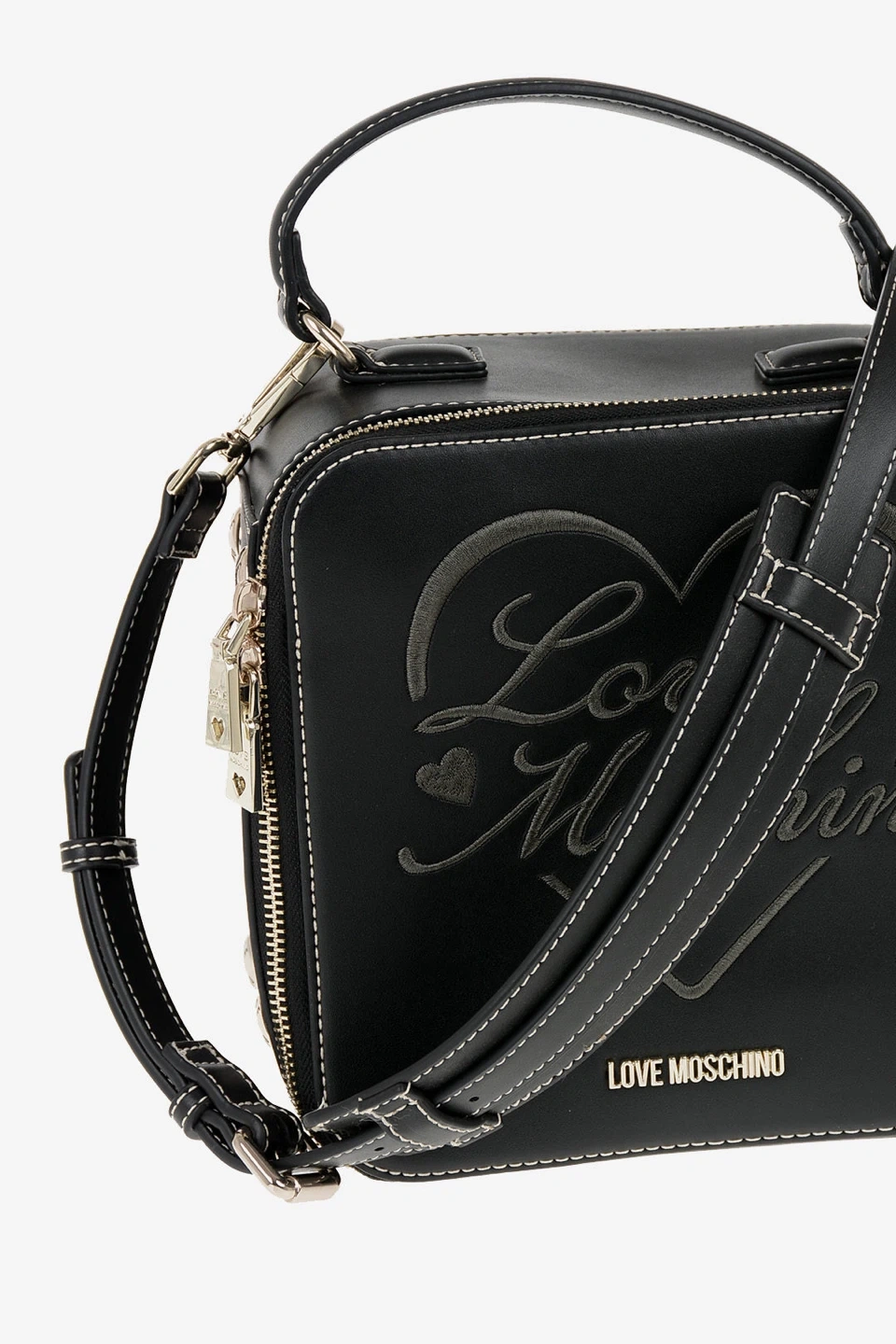Love Moschino Black Faux Leather Embroidered Shoulder Bag