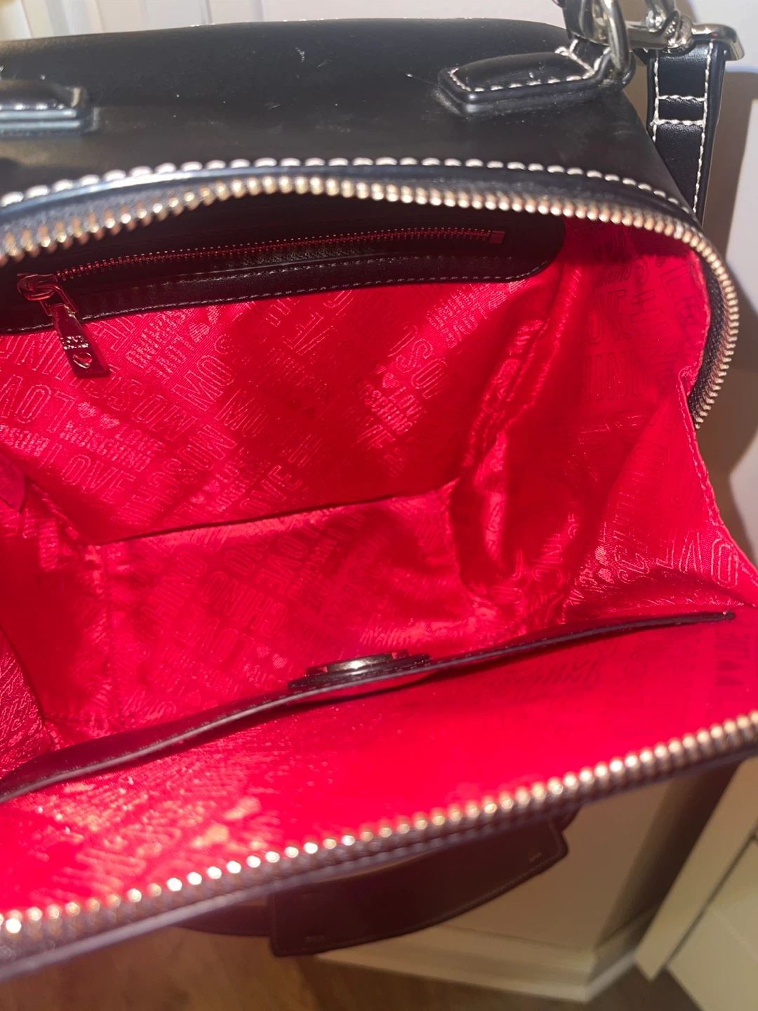 New without tags, never worn been in storage still has some protective stickers on. No dust bag. Minor scratch and scuff as shown but in overall excellent condition. Perfect for adding charm to any outfit. Features top handle and zip closure. Originally $270 CAD.