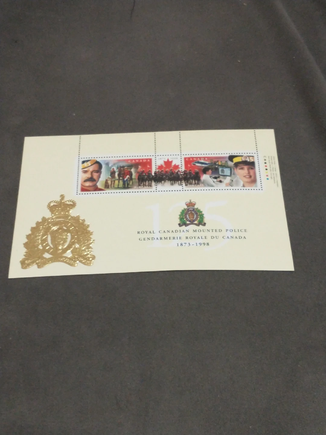 201Selling a commemorative stamp sheet celebrating the Royal Canadian Mounted Police from 1873-1998. It's in great condition! In box 11. To see all my postcards, postal cards, stamps, first day covers and other postal items, search ‘INpost’. Slava Ukrayini! Please note, I am not a dealer nor business, I'm simply selling my collections spanning decades. I don't buy or trade, nor meet or deliver... all purchases can be picked up in the lobby of my building of residence at Broadview/Pottery. I will gladly ship most items but will not pay postage nor accept responsibility for loss. I welcome any questions but at the first sign of insolence or trolling, the messager will be blocked. I stand behind all my items and offer satisfaction guarantee or full refund. Please refer to my feedback stats which reflect my high customer satisfaction. Thank you. All my items come from a MAGA-free home.