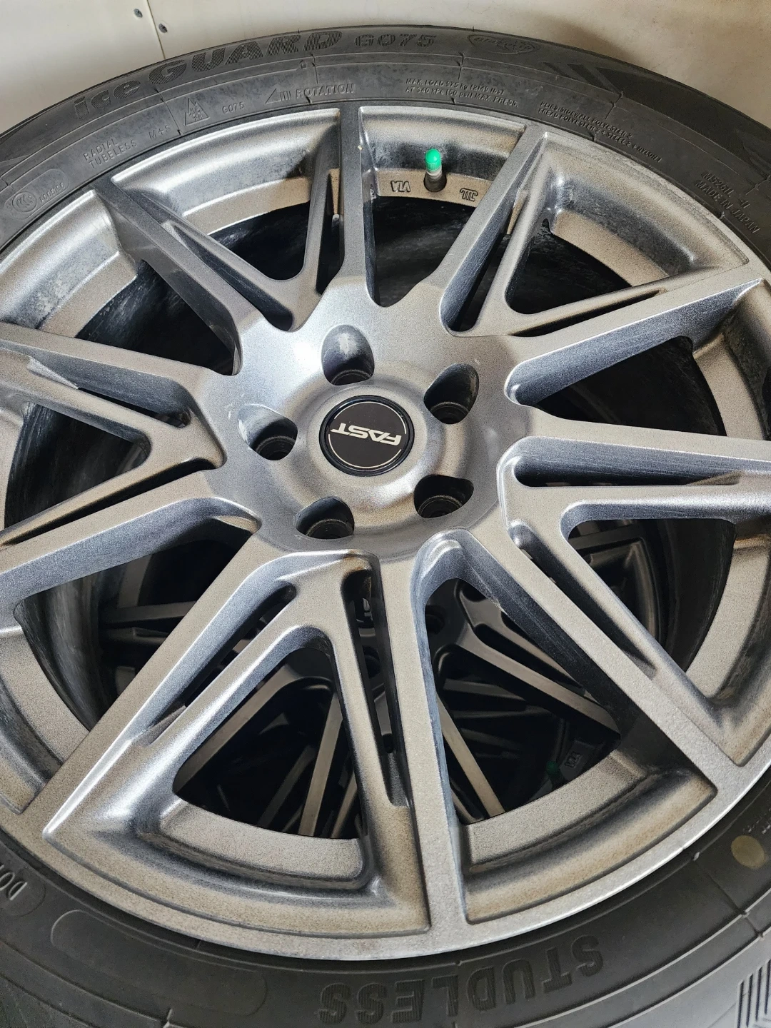 Set of 4 Yokohama Ice Guard G075 studless winter tires mounted on FAST alloy rims.