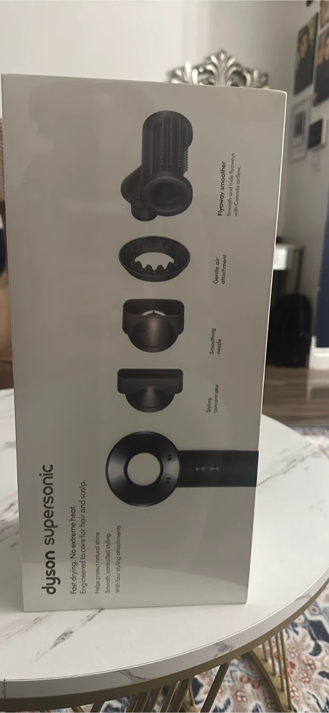 Selling a brand new Dyson Supersonic hair dryer, still in its original packaging! It's designed for fast drying with no extreme heat, engineered for different hair types. It also helps protect natural shine and scalp. Comes with five styling attachments for smooth, controlled styling