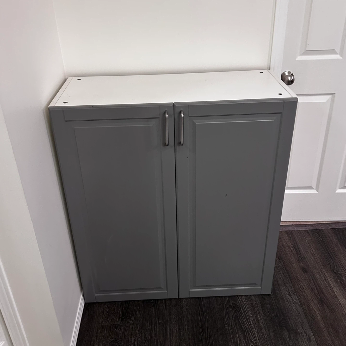 Selling a grey cabinet in good condition. It's a great storage solution for any room in your home