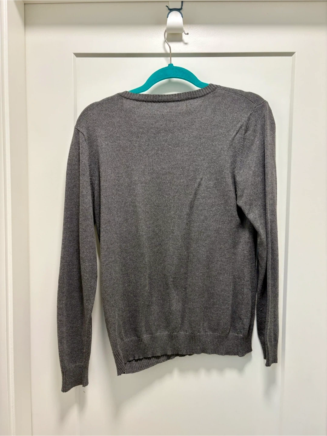 1000+Selling a simple grey V-neck sweater! It's in great condition and ready for a new home. Perfect for layering or wearing on its own, this sweater is a versatile addition to any wardrobe