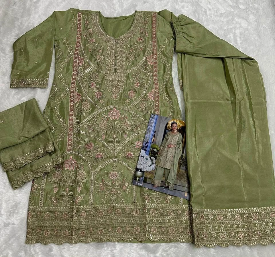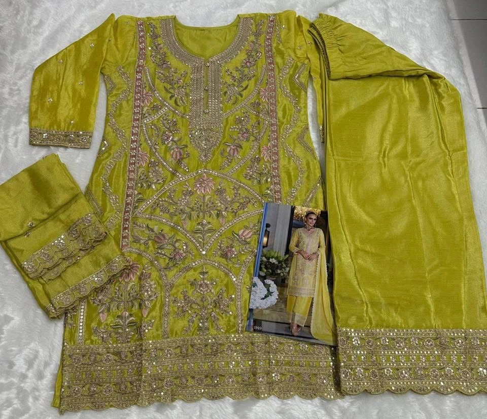 BOTTOM: Heavy Chinon Silk with havy Emb. work & Siquance work (full stich)