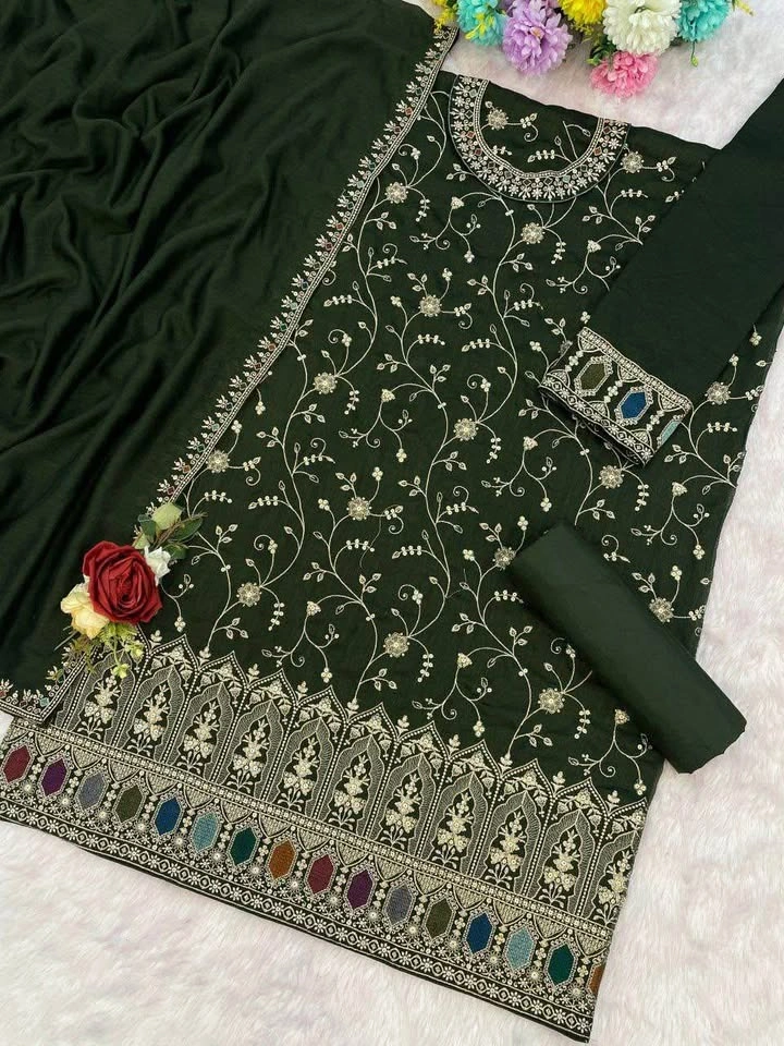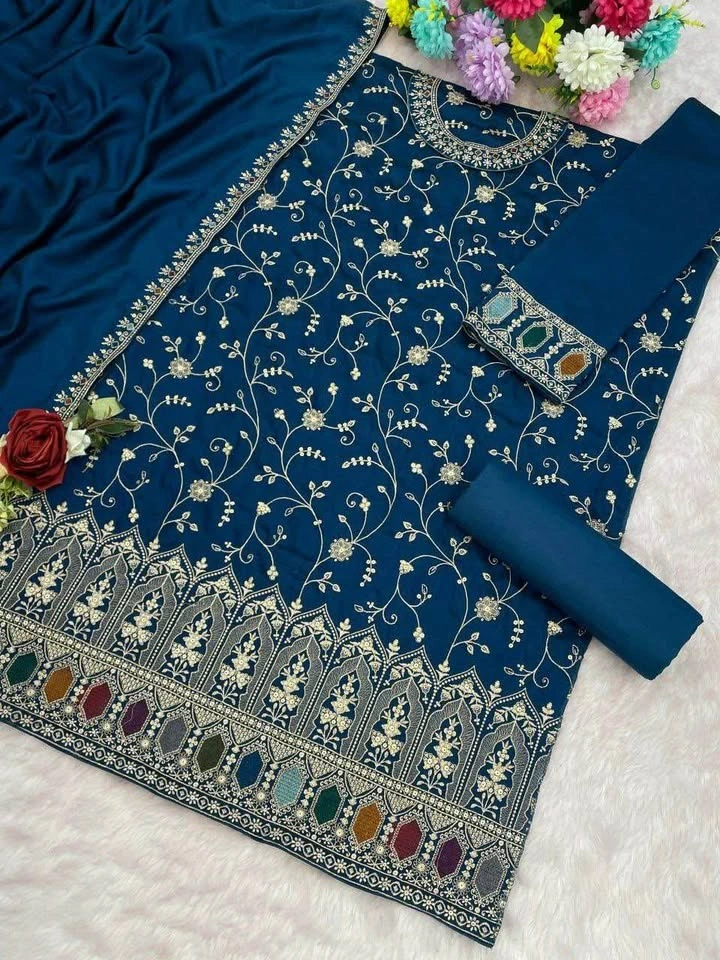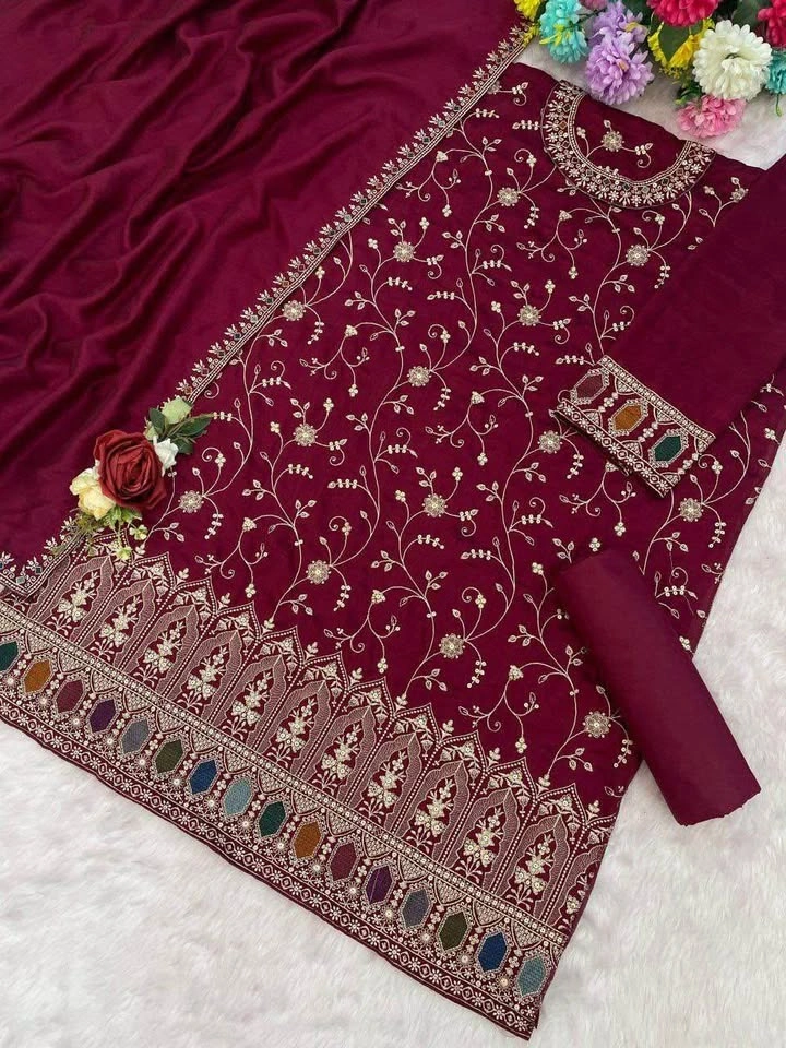 Top: Heavy Blooming Vichitra With Embroidery Sequence Work