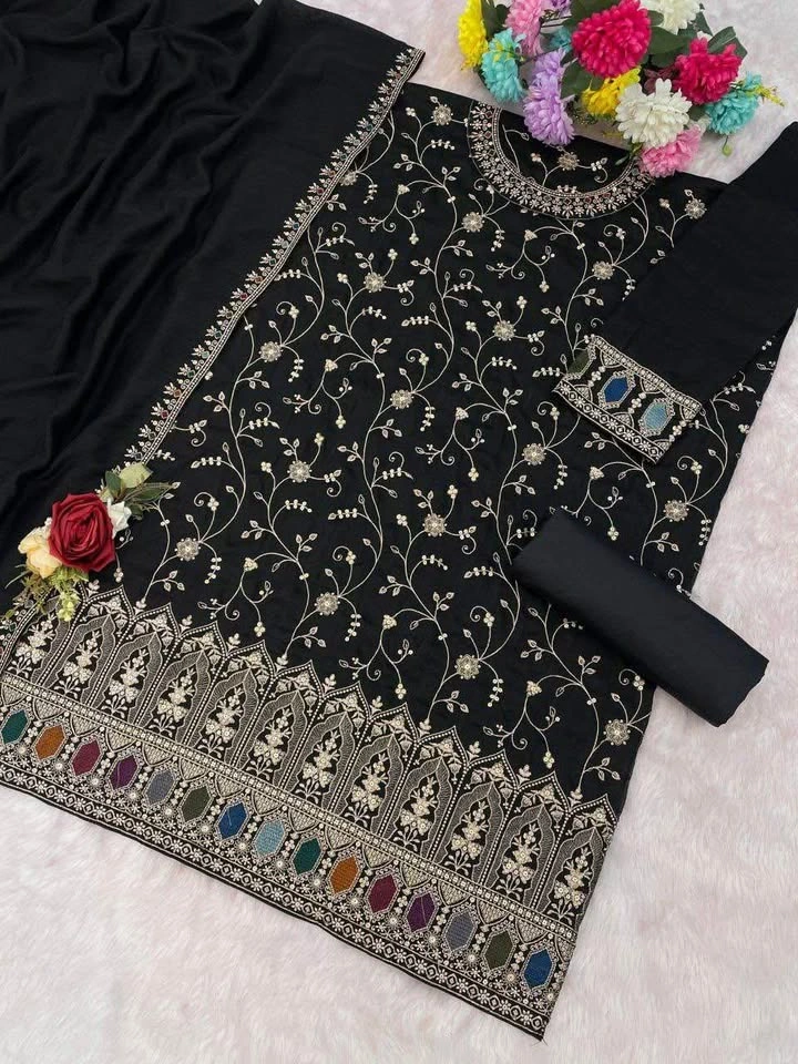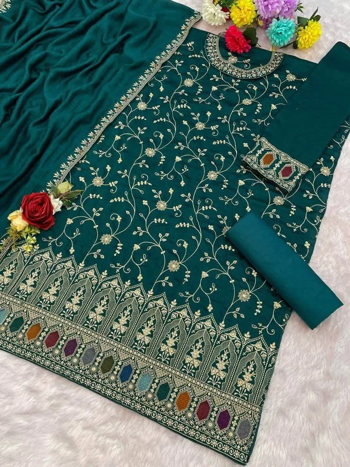 Top: Heavy Blooming Vichitra With Embroidery Sequence Work