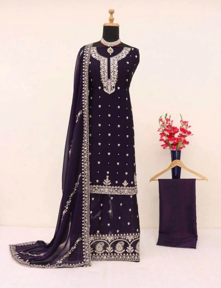Beautiful chinnon silk suits upto size 60 fully stitched