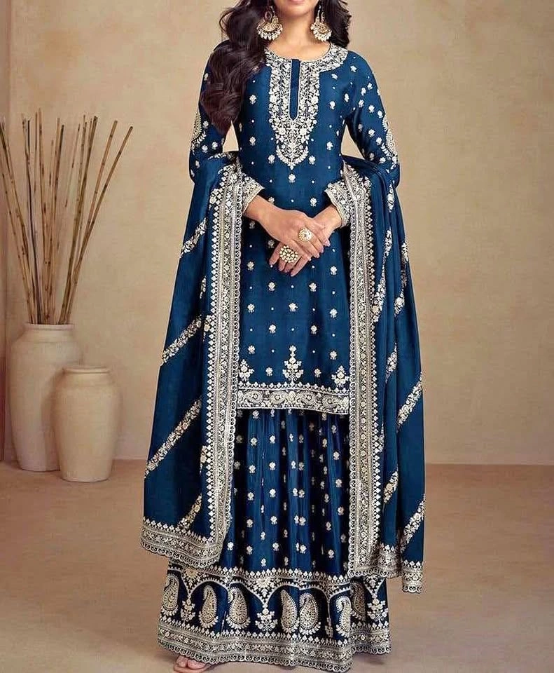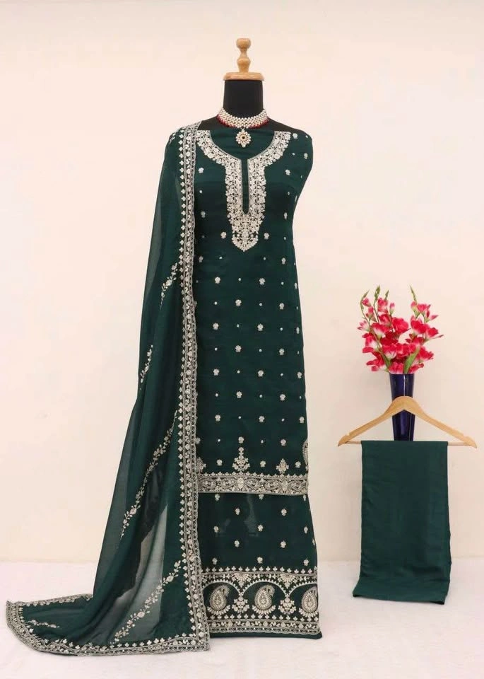 Beautiful chinnon silk suits upto size 60 fully stitched