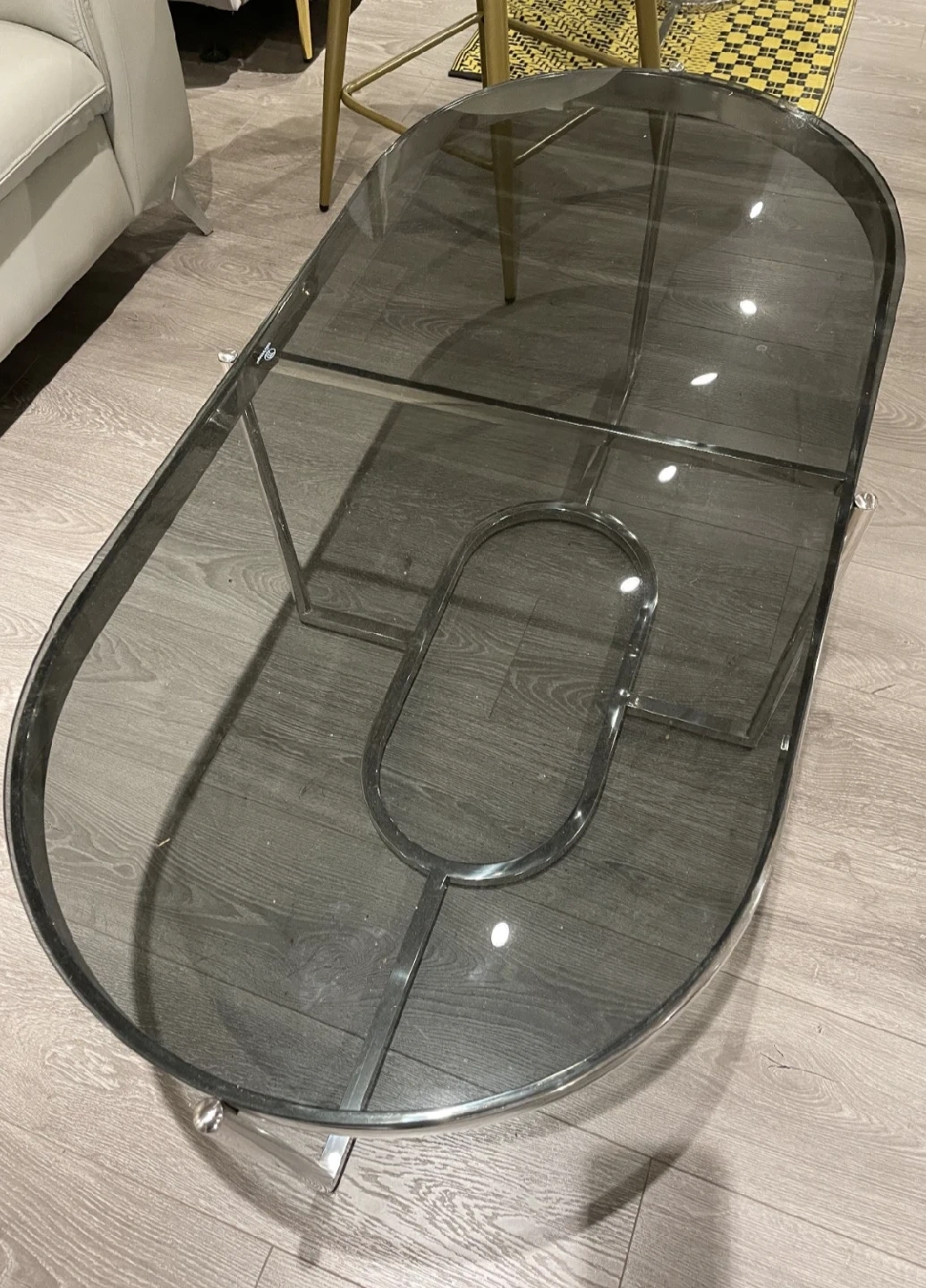 Jennifer Oval Glass Coffee Table – Silver Base (47” x 23” x 18”)