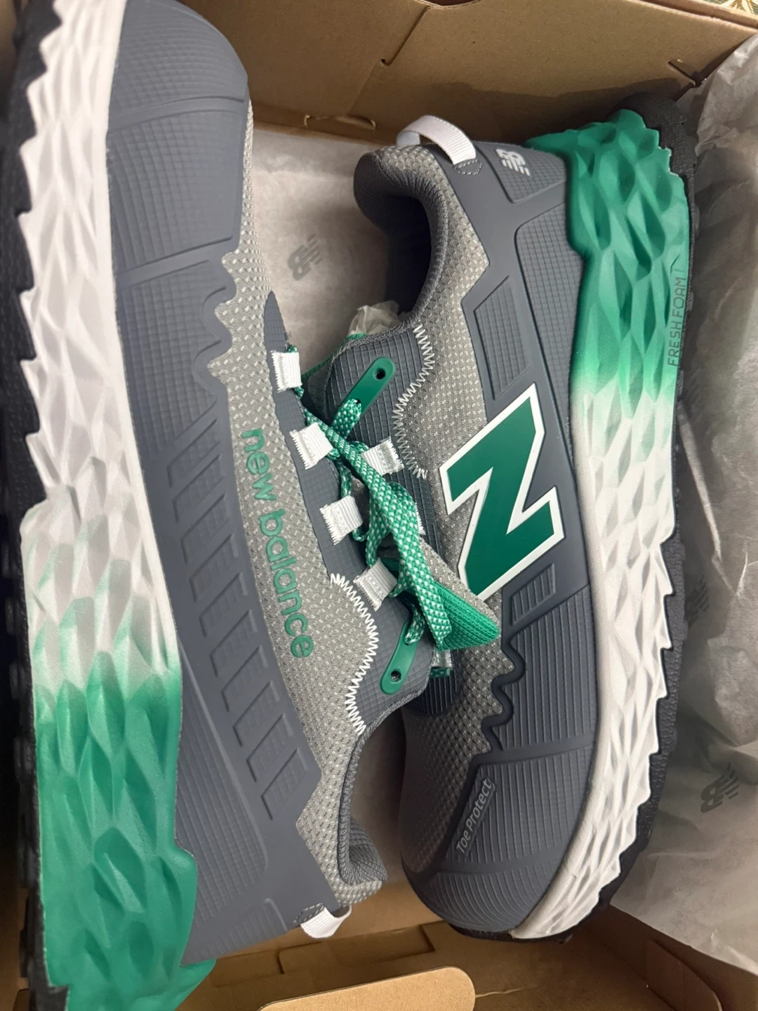 758Selling a pair of New Balance Cremorne grey men's composite toe safety shoes in size 11 US. These are alloy/green alloy/vert and wide/large (2E). Comes with the original box!