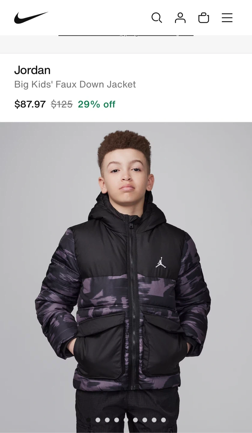 Selling a Jordan Big Kids' Faux Down Jacket! It's in new condition and ready for a new home. This stylish and warm jacket is perfect for keeping your little one cozy during the colder months. It features a cool design and the iconic Jordan logo. Size 13-15