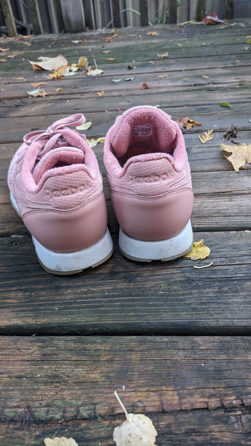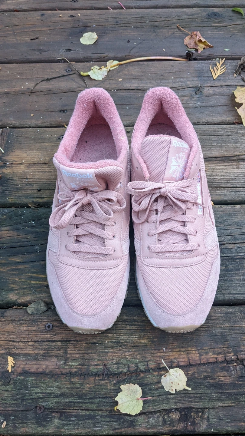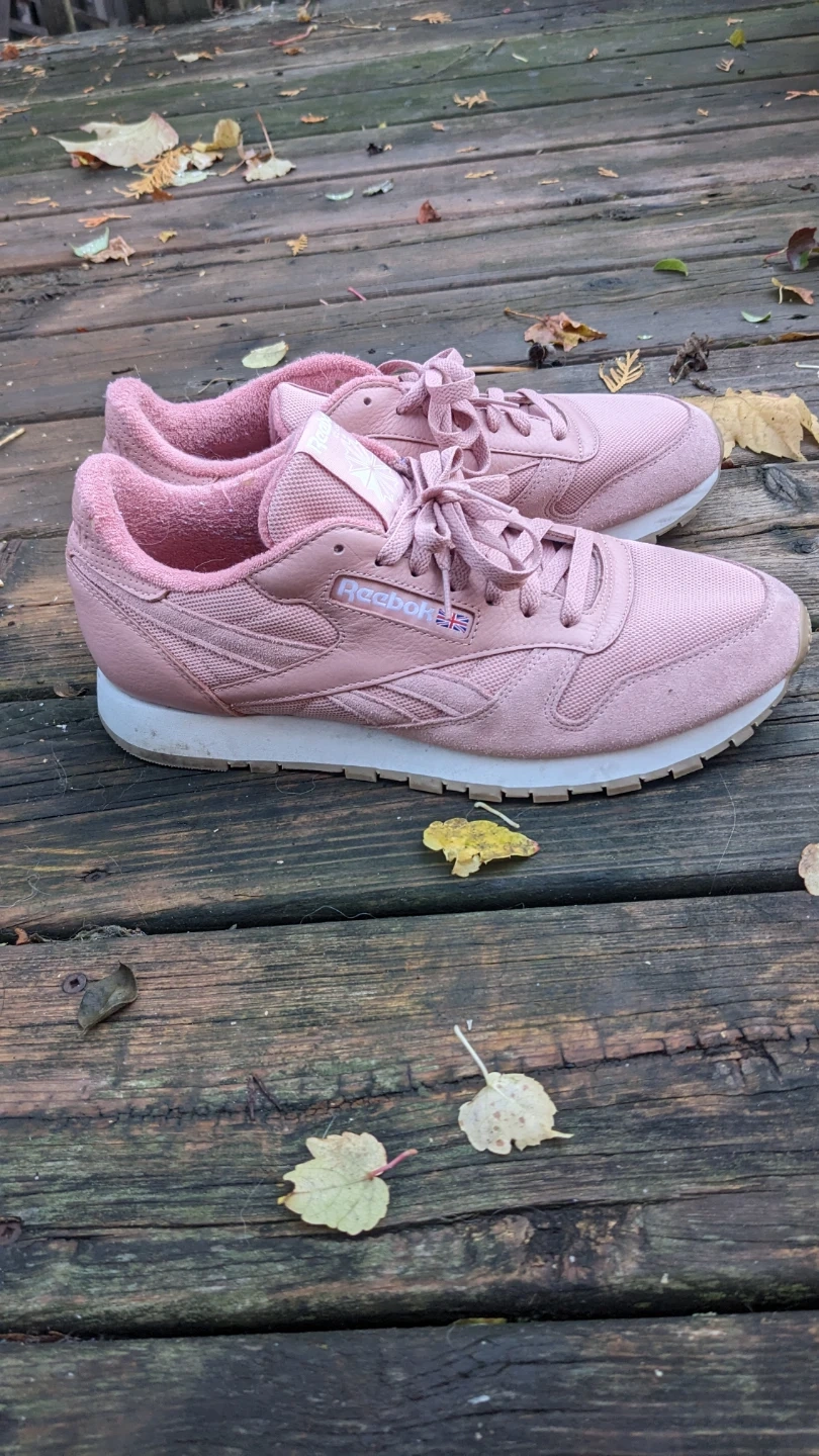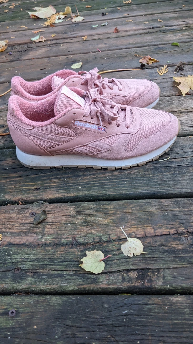 120Selling a pair of Reebok Classic Harman Run sneakers in a lovely pink colour! These shoes are in used condition, but still have lots of life left in them. They are perfect for casual wear or light exercise. A great addition to your footwear collection!