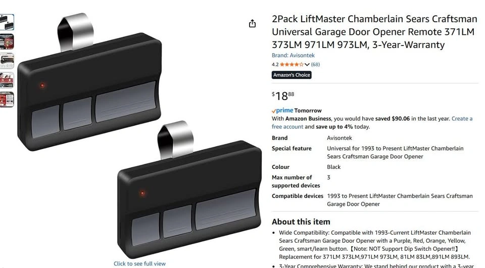 2 sets for LiftMaster Chamberlain CraftsmanGarage Door Opener Remote.