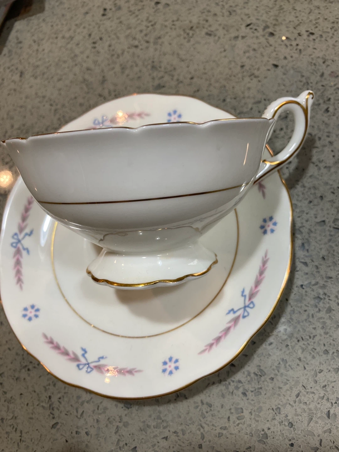 Selling a beautiful Coalport Spring Song teacup and saucer. It features a delicate floral design with gold trim. It's in great condition and would be a lovely addition to any collection or a charming way to enjoy your tea!