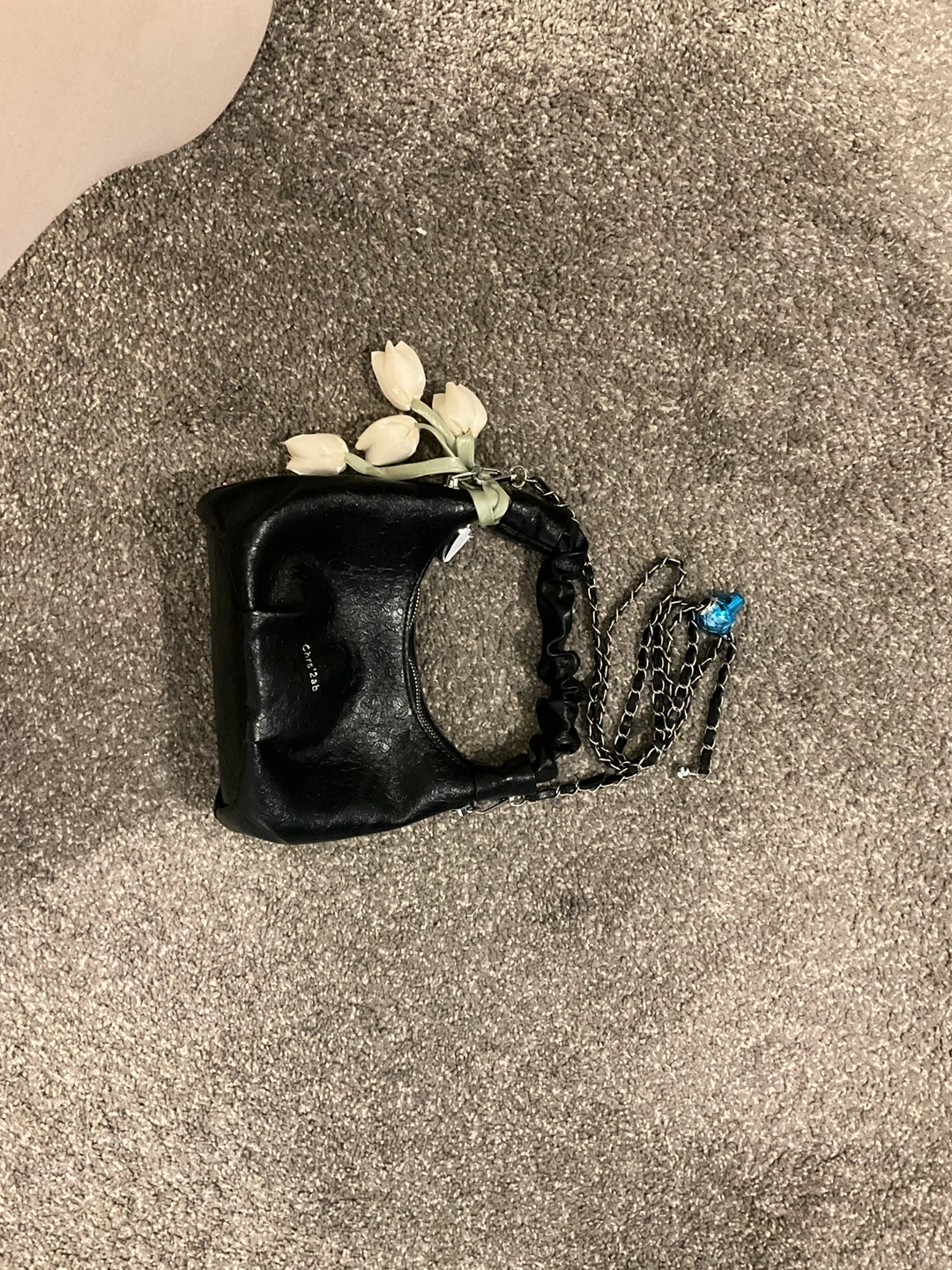 Selling a Carlyn Cozy bag in black! It's in great condition and has a unique design with chain and floral accents. Perfect for adding a stylish touch to any outfit