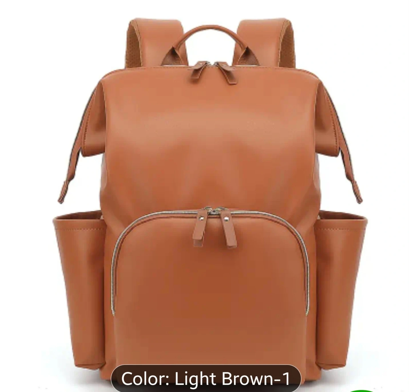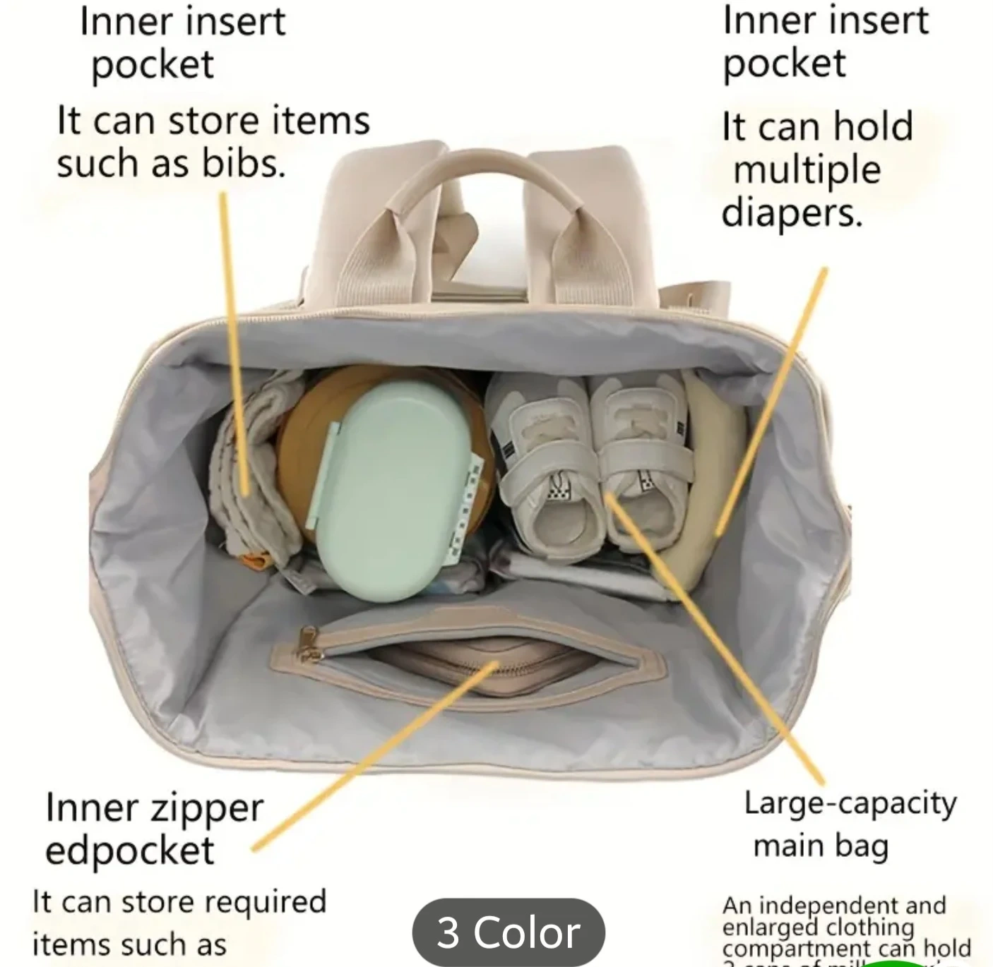 This light brown diaper bag backpack is perfect for keeping everything organized when you're out and about with your little one! It features: