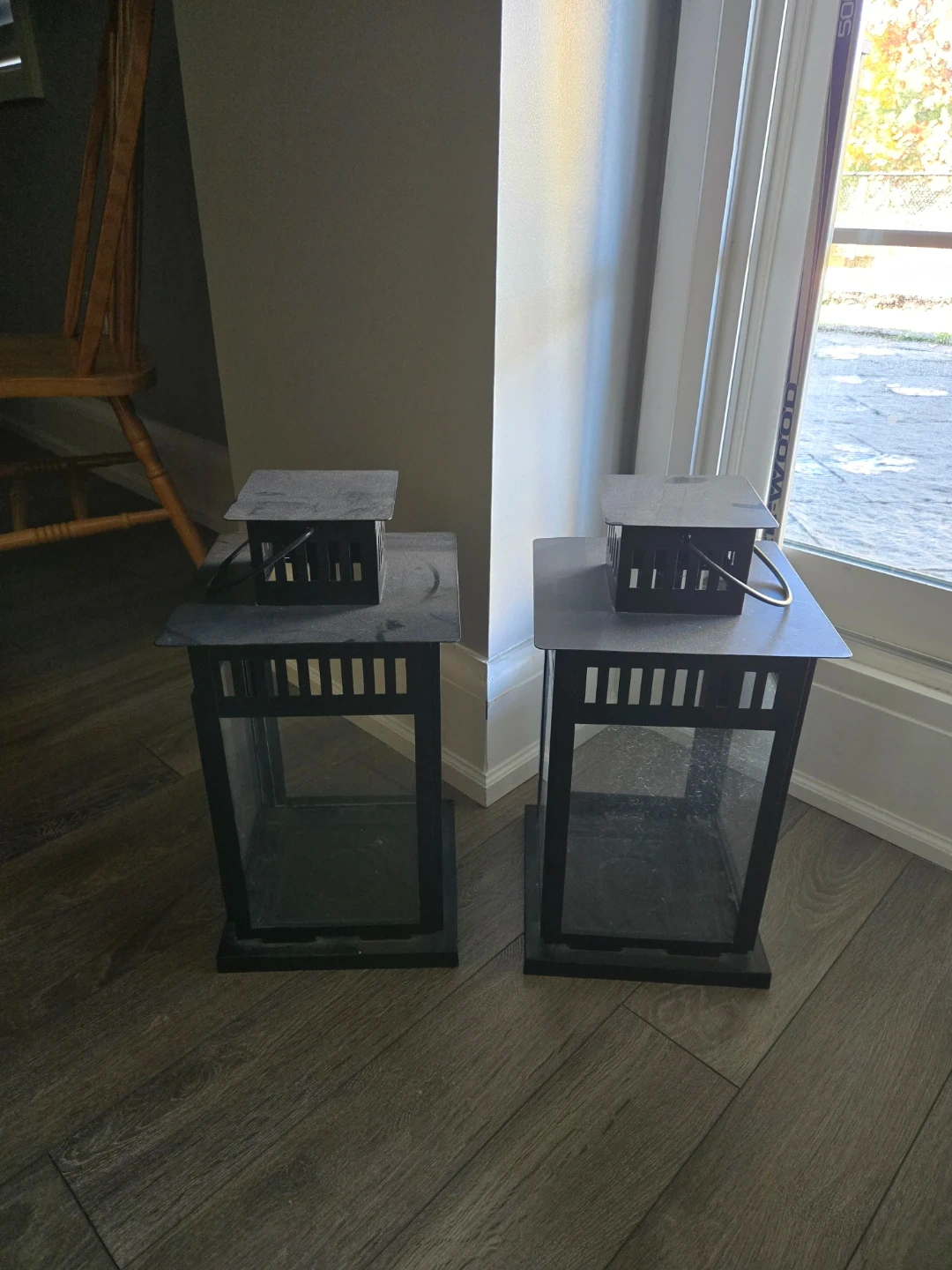 18Selling a set of two black metal lanterns. They're in great shape and would look lovely in any room or on a patio. Perfect for adding a touch of warmth and style to your home! Pickup weston rd and Rutherford rd. Cash only pls