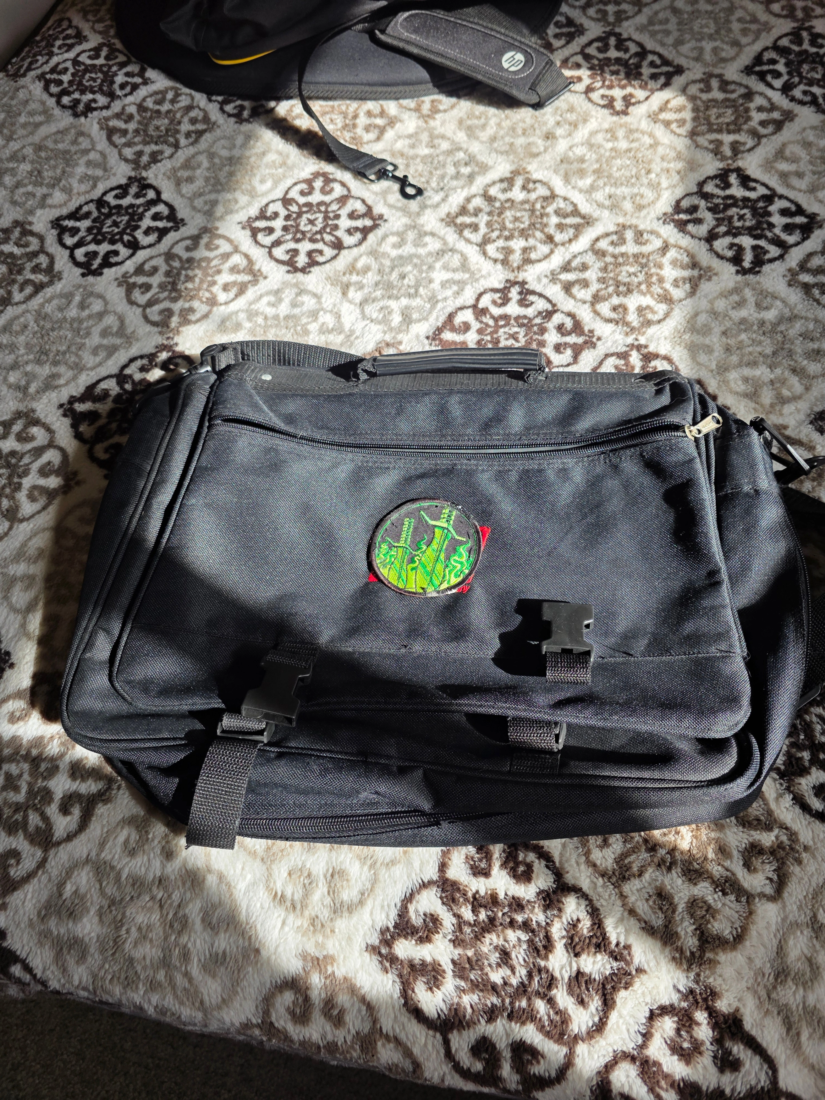 Selling a black shoulder bag from Bass Pro Shops. It's in good condition and ready for a new home!
